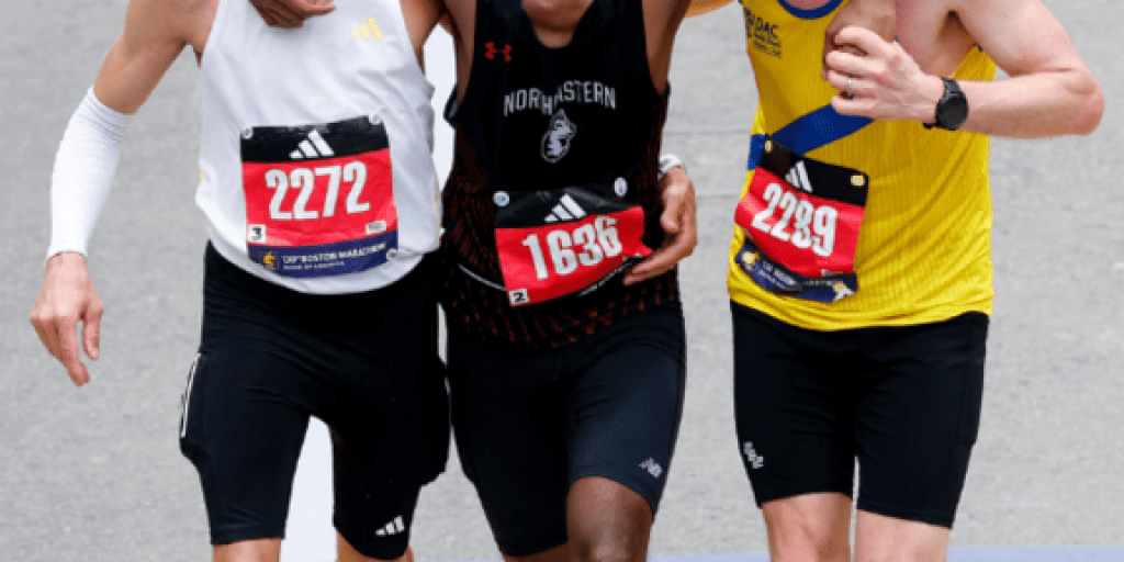 Runners help exhausted man finish Boston Marathon