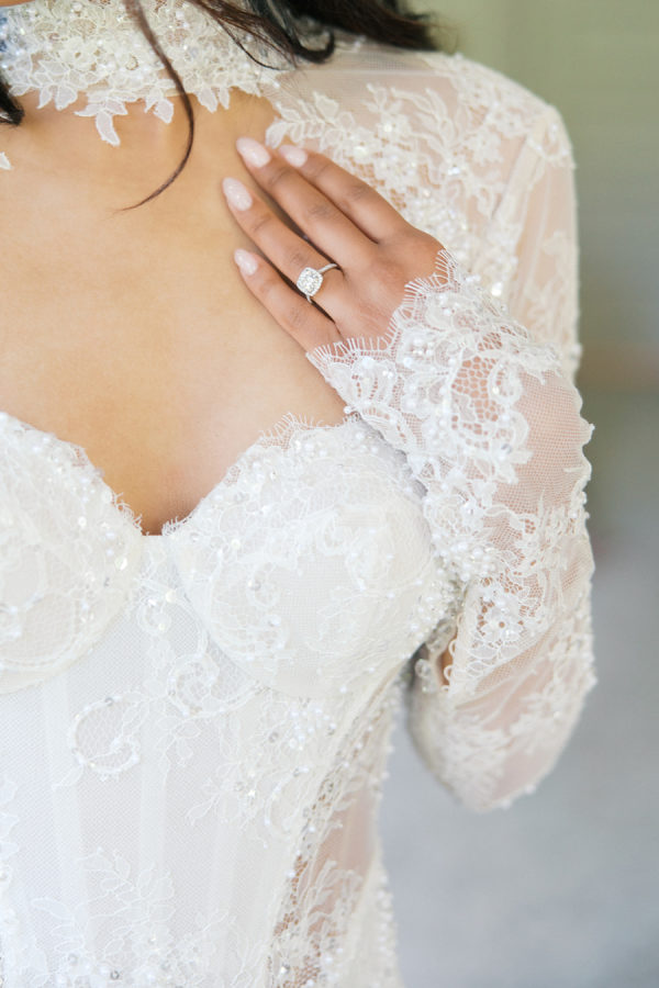 [field title=”Wedding Gown”]The bride wore a fit-and-flare gown that was both glamorous and unique, with intricate detailing and dainty lace sleeves showered with pearls and beading.[/field]