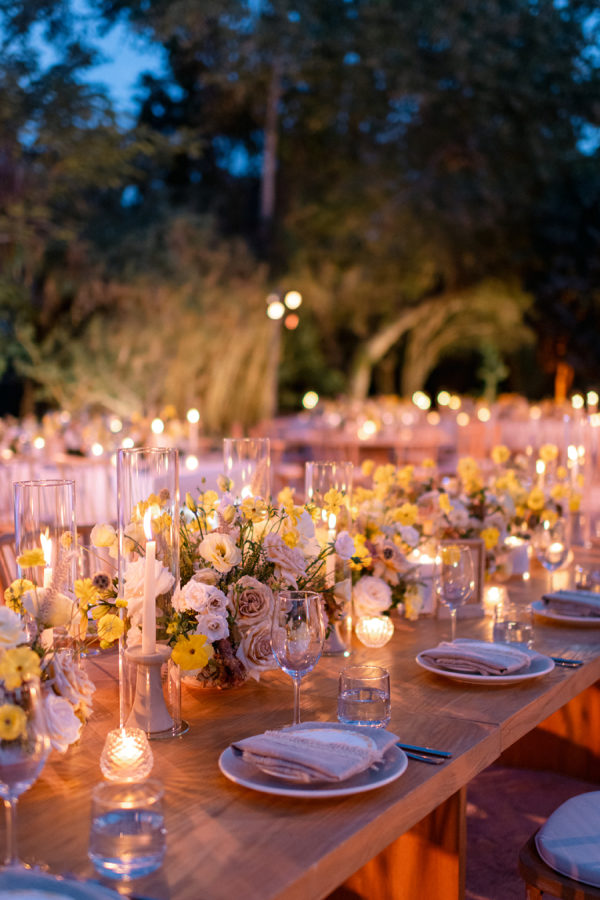 Cassidy’s wedding style drew inspiration from the Baja desert—organic and untamed yet deeply refined. The arrangements echoed the landscape with textured blooms, airy grasses, and a natural flow that felt sun-kissed and effortless, while soft candlelight added a touch of understated romance.