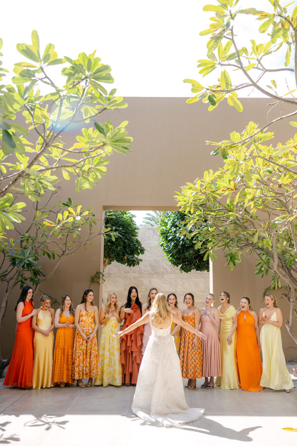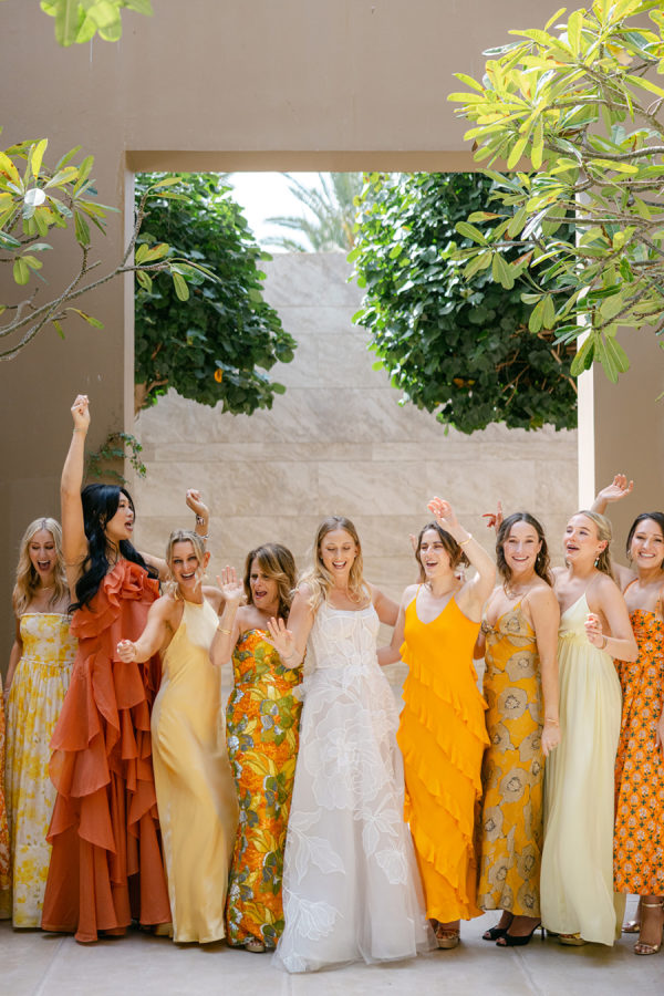 As for the bridesmaids’ dresses, Cassidy had always imagined everyone in yellows and oranges. She gave minimal direction, and the girls just went for it! She loved how each dress perfectly reflected everyone’s individual style. They ended up with lots of designer overlap (Agua Bendita, Aje, Zimmermann), so it flowed well!