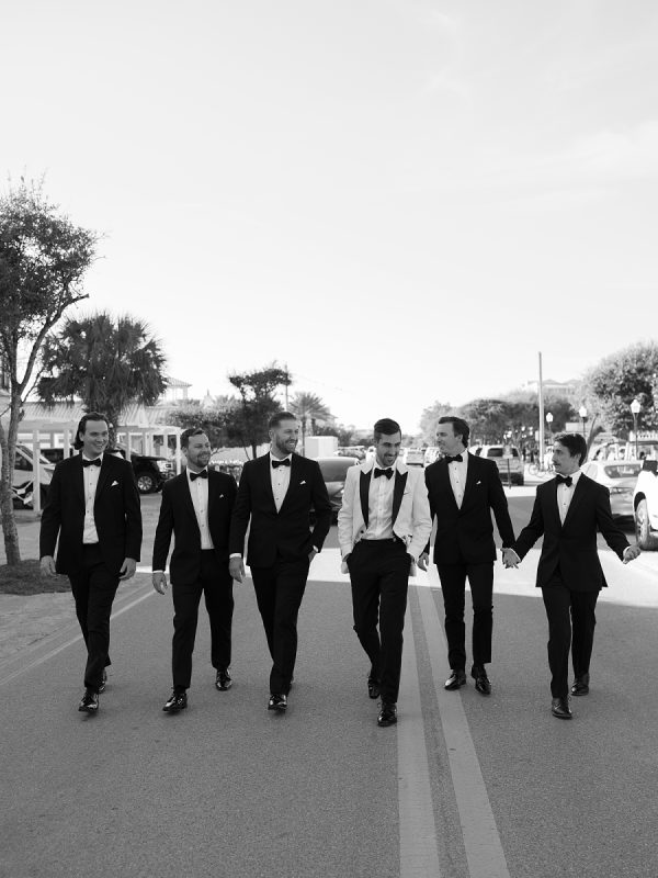 Photography: Sean Thomas Photography | Cinematography: Thomas Malphrus | Event Design: Myrtie Blue | Event Planning: Shelby Peaden Events | Wedding Dress: Amsale | Cake: Sweetly Sisters | Invitations: Craftsman Paper Company | Ceremony Venue: The Court Seaside | Reception Venue: The Court Seaside | Catering: Swiftly Catered | DJ: Big Night Dynamite | DJ: TOP HAT LIVE | Men’s Attire: Suitsupply | Beauty: Chelsea Augustine | Engagement Ring Designer: James Allen | Rentals: Panache Tent & Event | Weddings Rings: Morrison Smith Jewelers