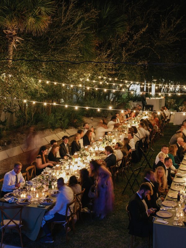 [field title=”Food & Drink”]The wedding’s culinary experience was nothing short of extraordinary, offering a well-balanced mix of elegance and indulgence. Guests were greeted with a selection of sophisticated passed appetizers, including bacon-wrapped scallops with dragon sauce, mini crab cakes with remoulade, baked brie tarts with pear and crispy prosciutto, and feta crostinis topped with artichoke and balsamic. A refreshing Italian Coastal salad with a light citrus vinaigrette set the stage for an exquisite plated dinner. The main course featured an herb-crusted beef tenderloin draped in merchant demi and chimichurri, alongside fresh grouper with key lime butter. Accompanying the entrées were perfectly roasted tricolor fingerlings and garlic parmesan asparagus. The beverage menu offered a thoughtfully curated selection of domestic and craft beers, high noon, and a variety of wines and prosecco. For cocktail lovers, premium spirits were paired with fresh fruit and mixers, while signature wedding cocktails—a zesty limoncello spritz and a perfectly balanced paloma—added a personalized touch to the celebration. As the night continued, a late-night snack spread of BLT sliders, burger sliders, and espresso martini shots kept the celebration going in style.[/field]