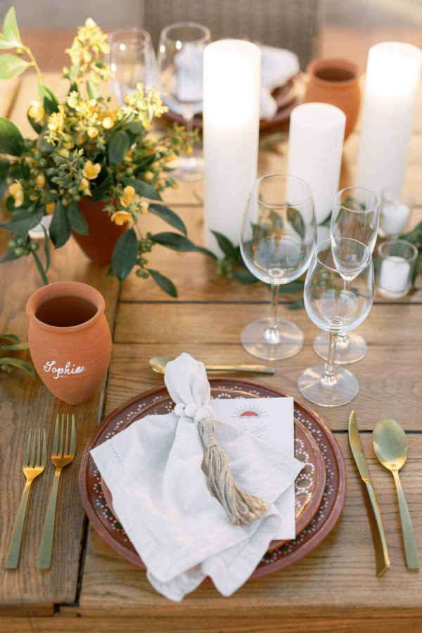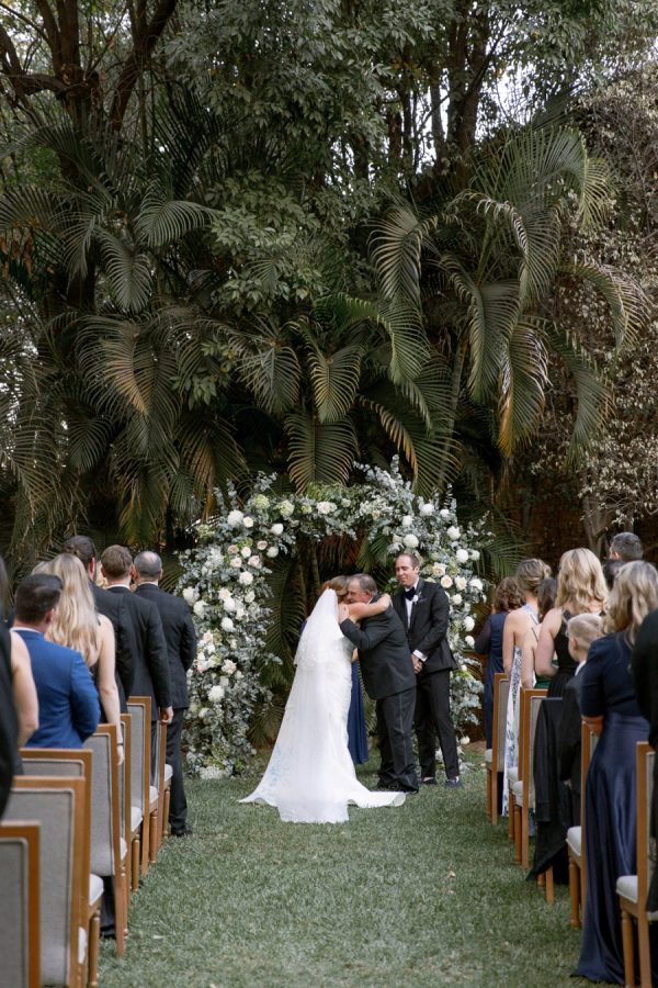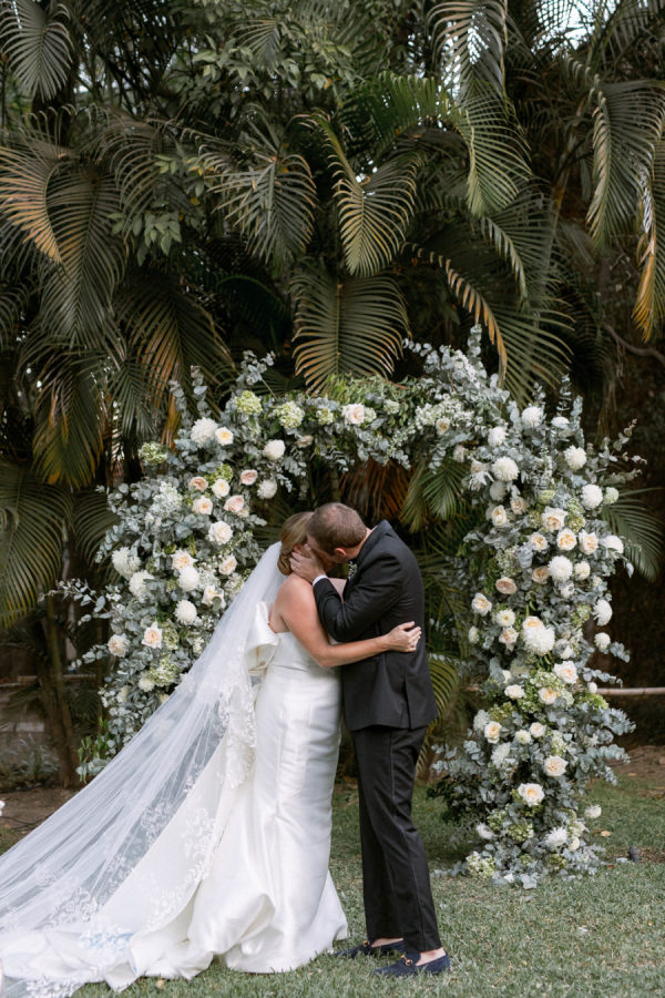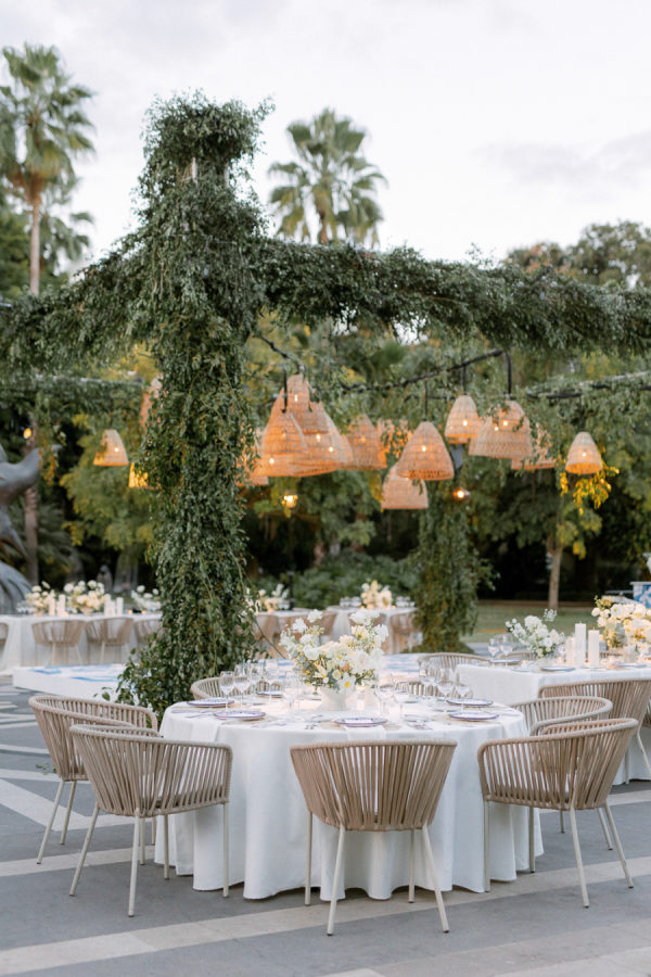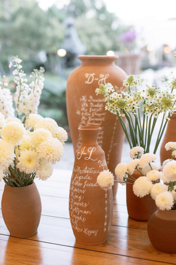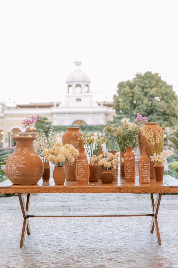 For florals, I kept saying I wanted them to feel organic and effortless. I wanted a neutral palette, so all the beautiful details of the china would be the star of the day. I worked with Floweriize to create the florals for our wedding day. She doesn’t use any floral foam, which I loved. I loved that we were able to do a little bit for Mother Earth on our wedding day. I asked for the flowers to be fragrant, white, soft, creamy blush, and green. I specifically asked for tuberose and gardenias as I love the scent and wanted the reception to smell delightful. Having planned a lot of events, I know how important it is for guests to be able to have conversations and be able to see over the flowers, so we did a lot of smaller satellite arrangements and candles. We used a lot of garden roses, poppies, stock, and some finer textured foliage. I really let Jimena of Floweriize pick the flowers that she saw at the market in Mexico City that week that looked the freshest and most beautiful to her. She then transported all the flowers from Mexico City to Tequila for our wedding.