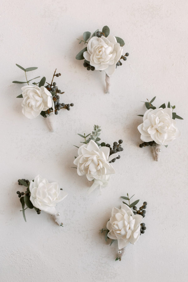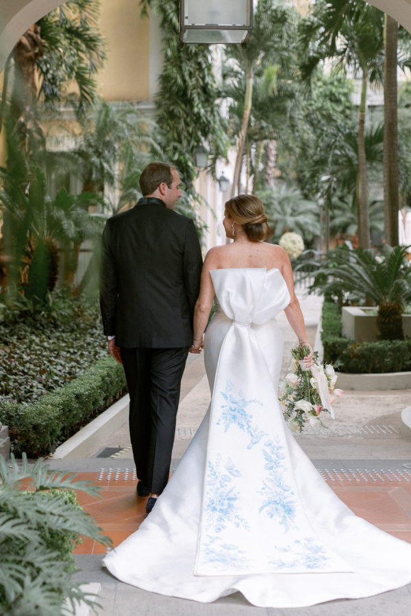 [field title=”Wedding Gown”]Lindsey wore the same stunning Pronovias gown she had chosen for their original vows two years earlier in California. But this time, the dress had a meaningful twist: Emily Plank hand-painted delicate blue flowers, butterflies, and a hummingbird to honor Parker on a stunning bow train attached to the back of Lindsey’s dress.[/field]