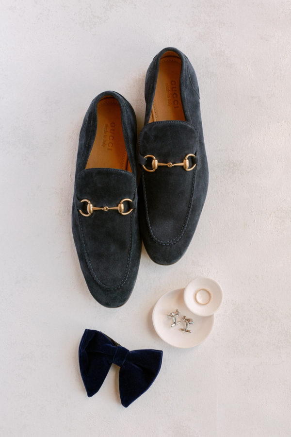 [field title=”Groomsman Attire”]Zach wore a black tuxedo, dark blue Gucci loafers, and a midnight velvet bow tie. His frog prince cufflinks were a sweet, sentimental nod to Parker: Parker received them as a gift when he was born. [/field]