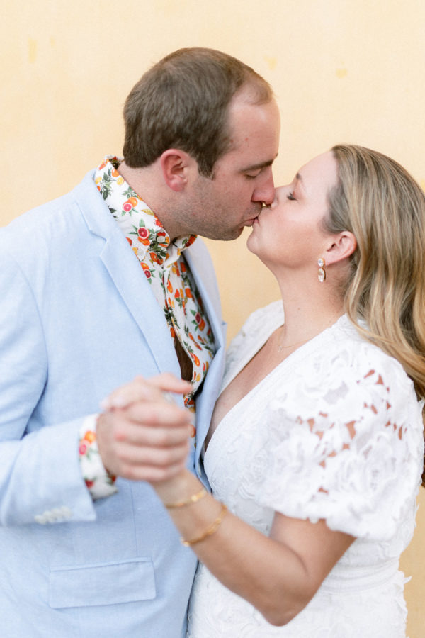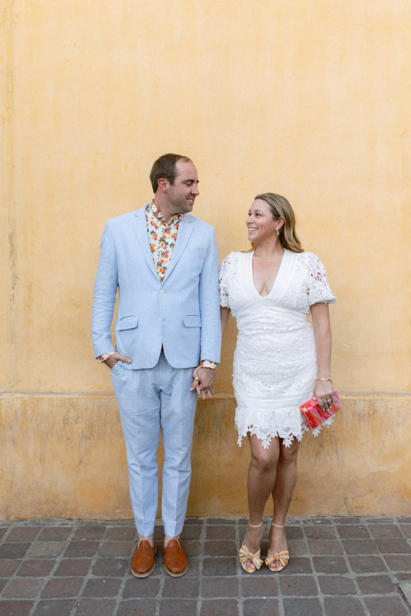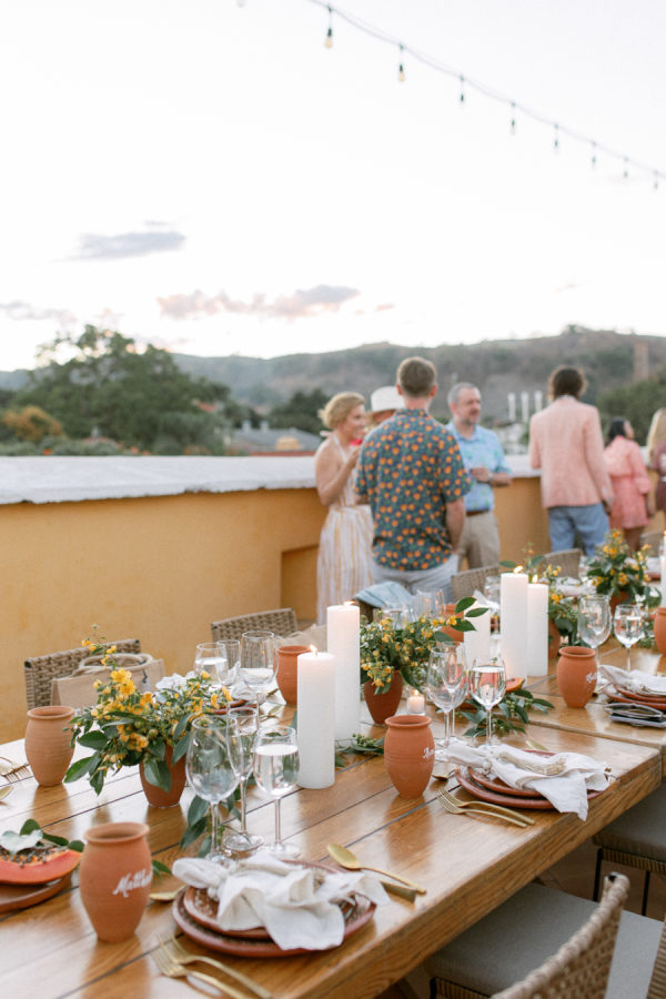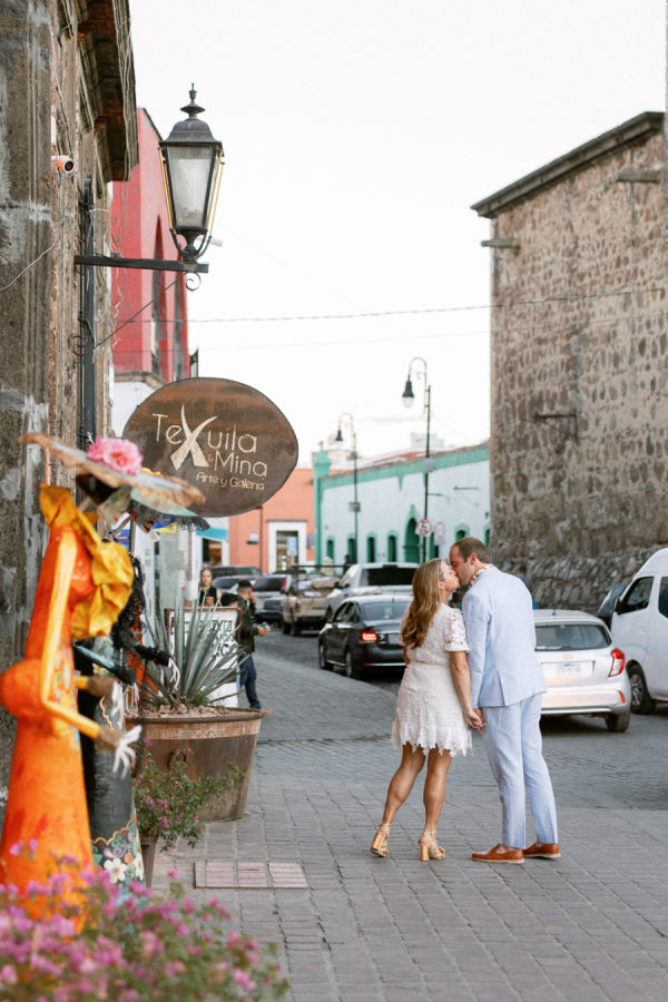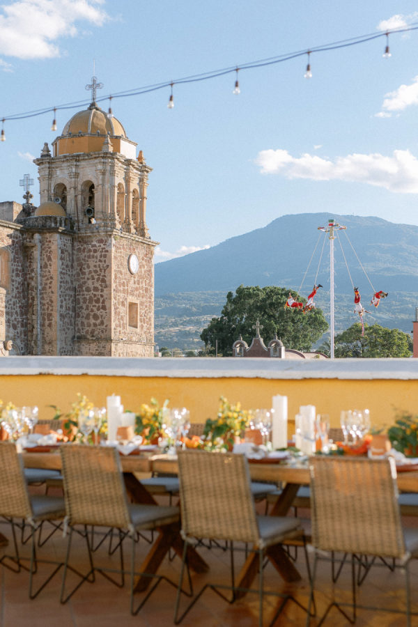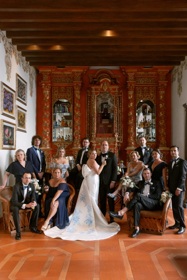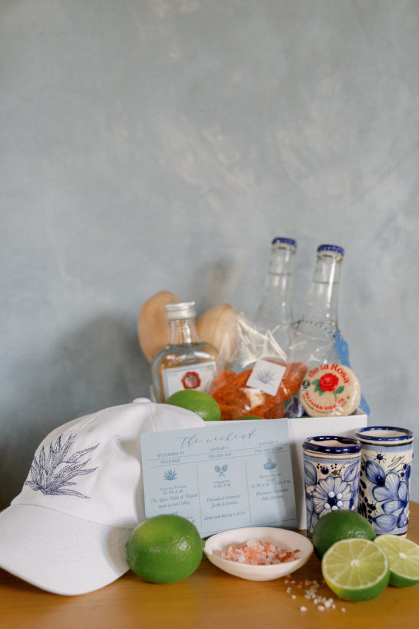 Lindsey and Zach’s wedding weekend in Mexico included events that led their guests throughout Tequila town. The weekend kicked off with a sunset-themed rehearsal dinner on the rooftop of Hotel Solar De Las Animas. A tequila tasting at Destileria Orendain led guests on a tour of the agave fields in shuttles shaped like tequila bottles and chili peppers. Zach and Lindsey shared that they were once again expecting and did a gender reveal in the agave fields surrounded by their family and friends (it’s a boy!). The night before the wedding, guests celebrated with a welcome party at Restaurante La Fonda Cholula in the town center.