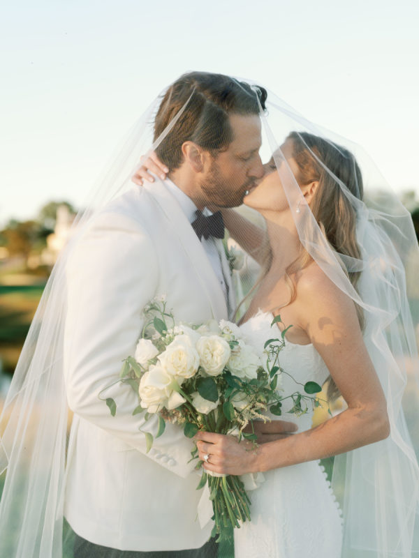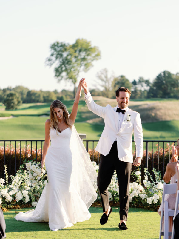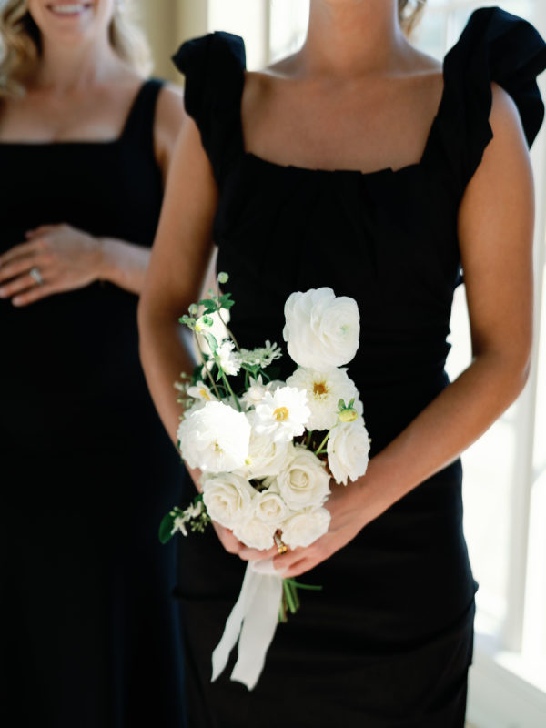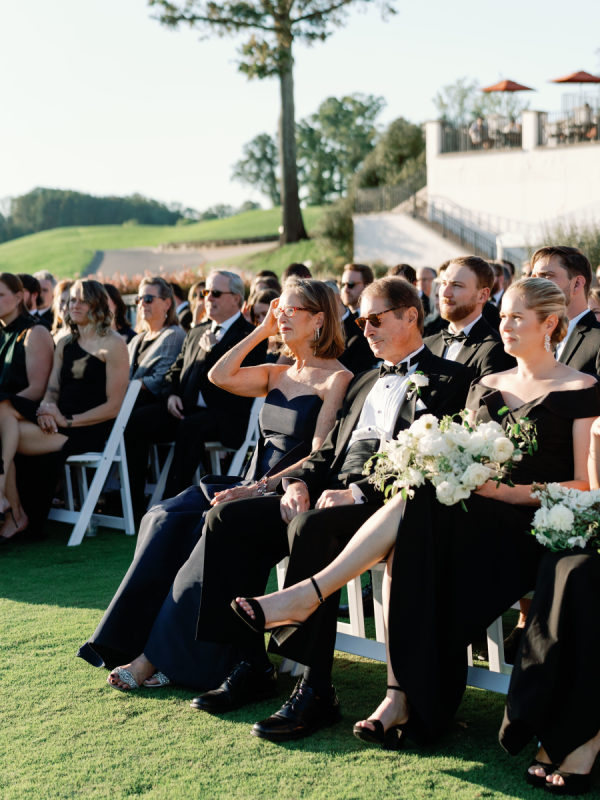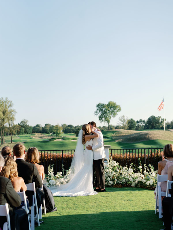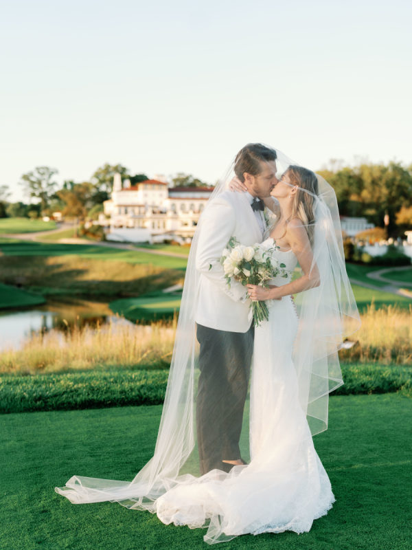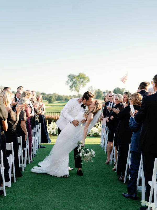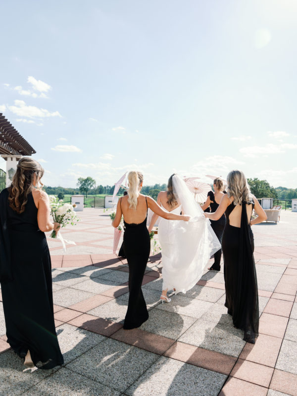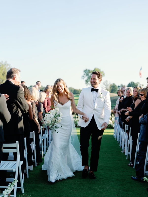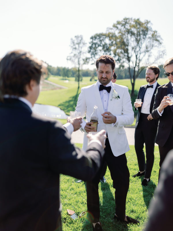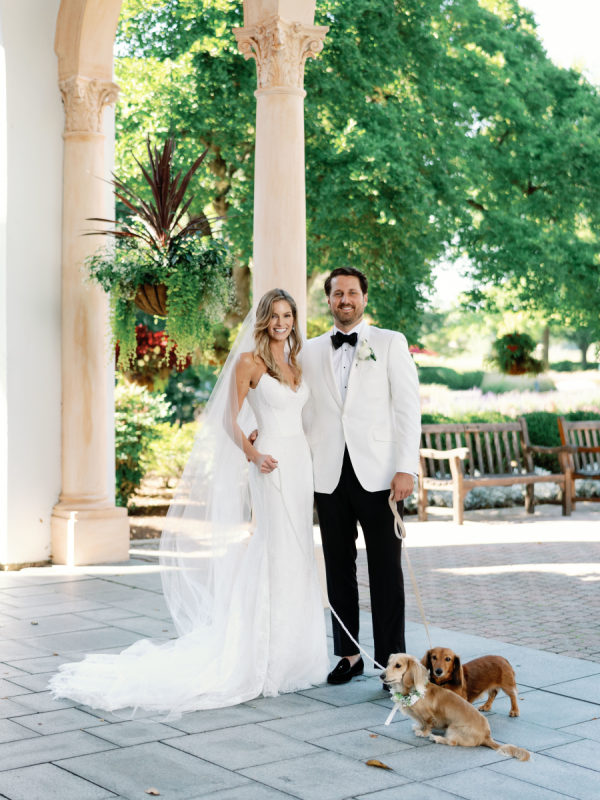 As planning went on, they continued to find new ways to weave Arlo and Poppy into the details, covering cocktail napkins and matchbox favors with illustrations of their dogs, Congressional, martinis, and more. Their signature cocktails also paid tribute to their pups—Arlo’s Aperol Spritz, Poppy’s Paloma, and the Tabb Tini (an ode to Greg’s martini recipe crafted during our quarantine days). They even had dachshund-shaped drink stirrers. From the bride: “If I had to choose, anything involving cheese was my ultimate favorite. I cheered when the Caesar salad in a parmesan crisp bowl was served. And if you were anywhere near me that day, you would have heard me say, “I can’t wait for the mac and cheese balls” every 30 minutes. My amazing bridesmaids and planner, Risse, even made sure I had a full plate of them waiting for me when we arrived at cocktail hour. Speaking of hors d’oeuvres, another favorite of ours was the bacon-wrapped dates stuffed with goat cheese. On the other hand, Greg is stating that I need to mention the crab cake balls, and the filet mignon entrées with family-style Béarnaise carafes. Honestly, if we keep going, then we’d just be listing our entire menu!”