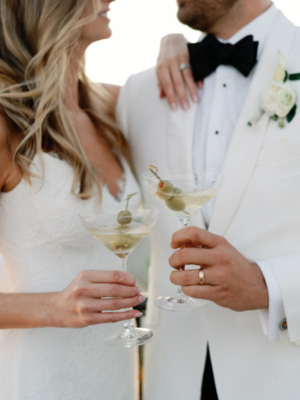 Greg suggested a trip to Jupiter, Florida, with their friends to celebrate her birthday. They all decided to have cocktails at the dock before dinner, and Greg told them not to be late so they wouldn’t miss the sunset (especially the bride, the perpetually late one of the group). She shockingly was the first of their friends to be ready, and that should’ve been her first sign. Greg and Madeleine made their way down to the dock to wait for their friends and watch the sunset. As they reached the dock, she paused to admire the full moon behind them that was peaking through the sky. When she turned back around to take in the sunset, Greg was down on one knee during the most magical golden hour with the lighthouse backlit across the water. She said “YAA!” through happy tears (it was giving dolphin). Their friends came running down—along with our dog, Arlo—to celebrate and pop champagne before they hopped on a boat that Greg had arranged to celebrate with dinner at their favorite restaurant. It was the best night ever. And as for Poppy, a.k.a. the second half of their “weenies and martinis” inspiration? Well, one week later, we were driving to pick up their little girl as fiancés. BEST BIRTHDAY WEEK EVER.
