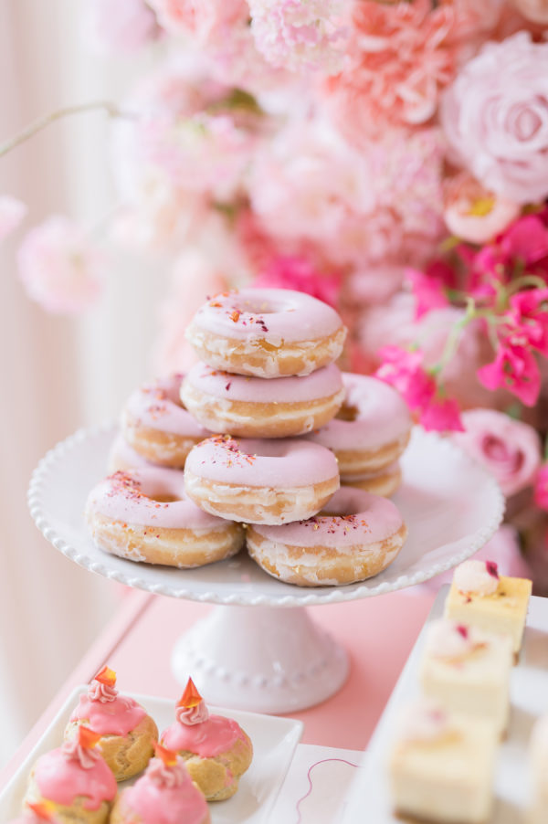 [field title=”Favorite Design Element”]One of our favourite design moments was the soft draping installation that welcomed guests upon arrival, instantly setting the tone for the celebration. Lush florals filled the space, adding movement and romance throughout, while blush and white striped tablecloths brought a playful yet polished layer to the tablescape. A beautifully styled sweets table became a focal point of the welcome room, tying together colour, texture, and femininity.[/field]