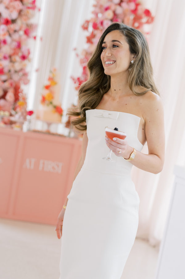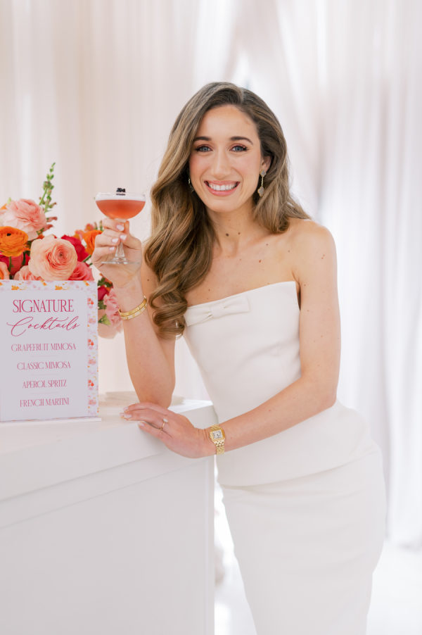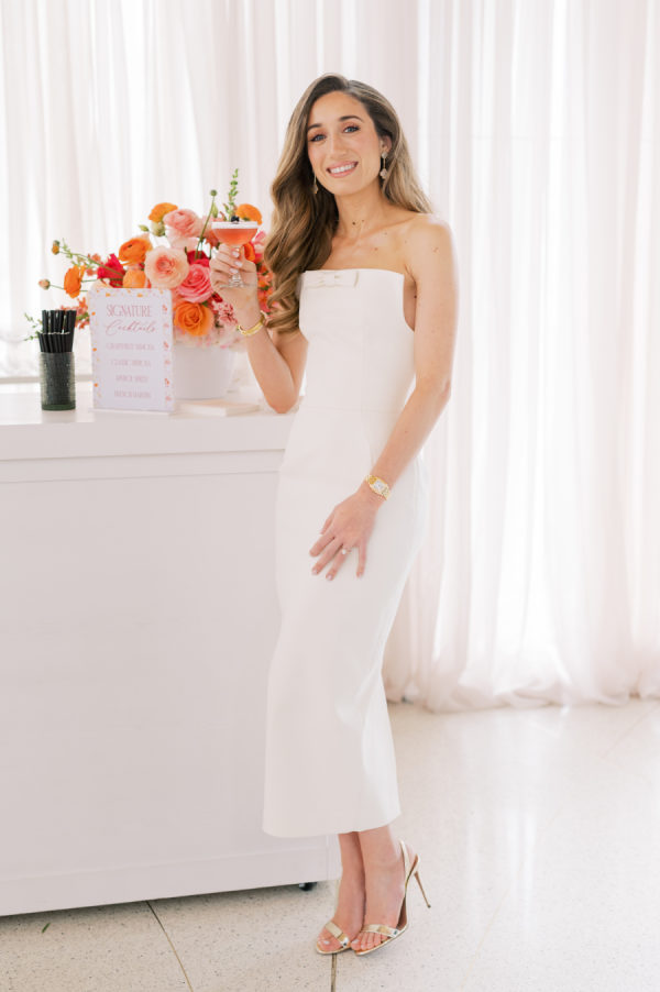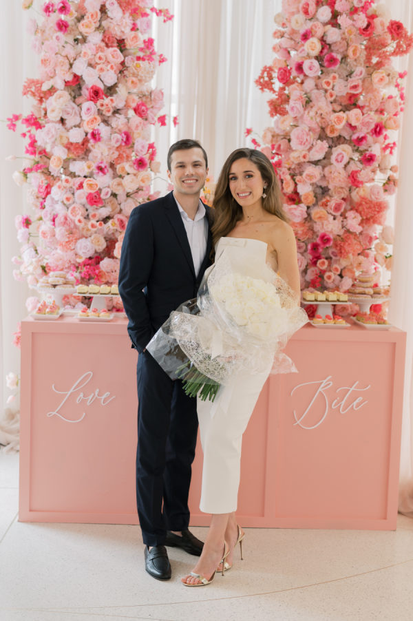 [field title=”DIY Moments”]Personal details made the day feel especially thoughtful. Each guest took home a box of traditional homemade cookies, a heartfelt nod to family and tradition. As a fun and interactive element, guests were also gifted hot pink luggage tags, with their names hand-calligraphed live at the event — a playful detail inspired by travel and Nicole and John’s upcoming destination wedding in Greece.[/field]