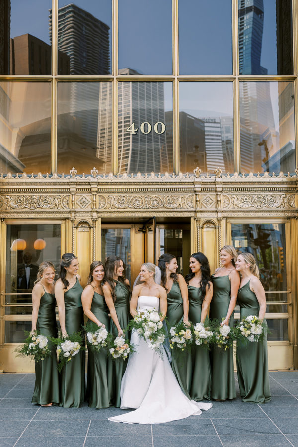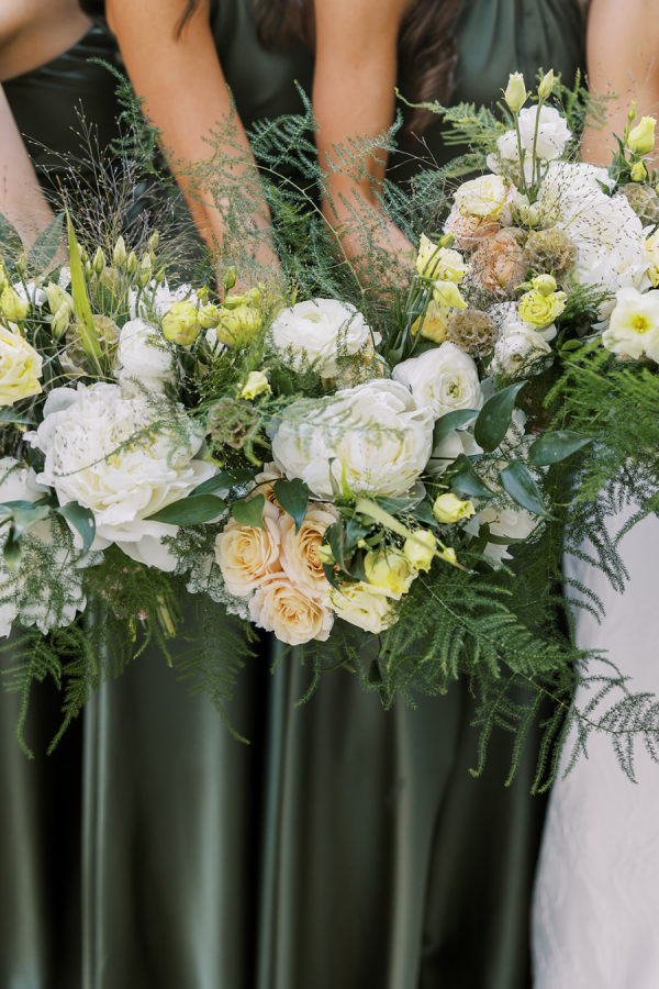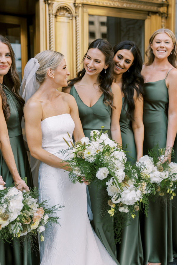 [field title=”Bridesmaid Dresses”]The girls wore a variety of styles from Jenny Yoo in an Olive Green color and satin material.[/field]