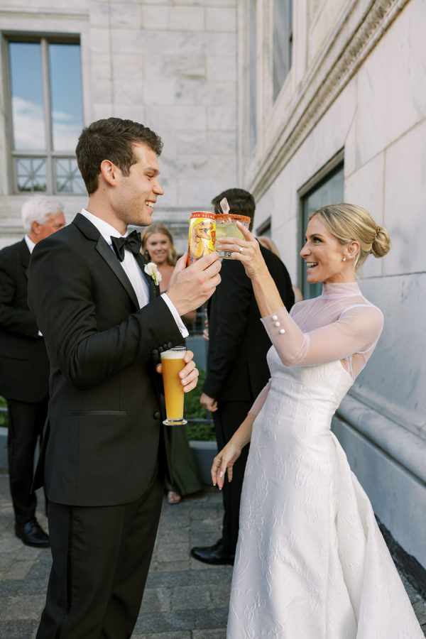 [field title=”Food & Drink”]For signature drinks, they were able to tie in one of our favorite cocktails named after their Dog Ivy who was named in honor of the Ivy at Wrigley Field in Chicago along with an IPA beer that happened to have dinosaurs on the logo in honor of the dinosaurs in the museum. IPA’s are the brides favorite beer and Brian is a sucker for tequila so it was the perfect combo. And the late night espresso martinis were a hit – kept guests buzzing on the dance floor all night!