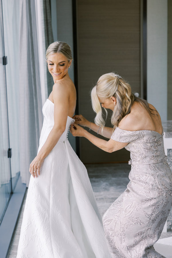 [field title=”Wedding Gown”]The wedding dress was the Amelie Brocade grown designed by Jesus Piero. The bride & her mother worked with a seamstress at Ultimate Bride in Chicago to design a custom bolero / topper to be built into the dress to wear during the ceremony and cocktail hour. This was such a fun element to surprise Brian and the whole bridal party and special for the bride to create with her mom.[/field]