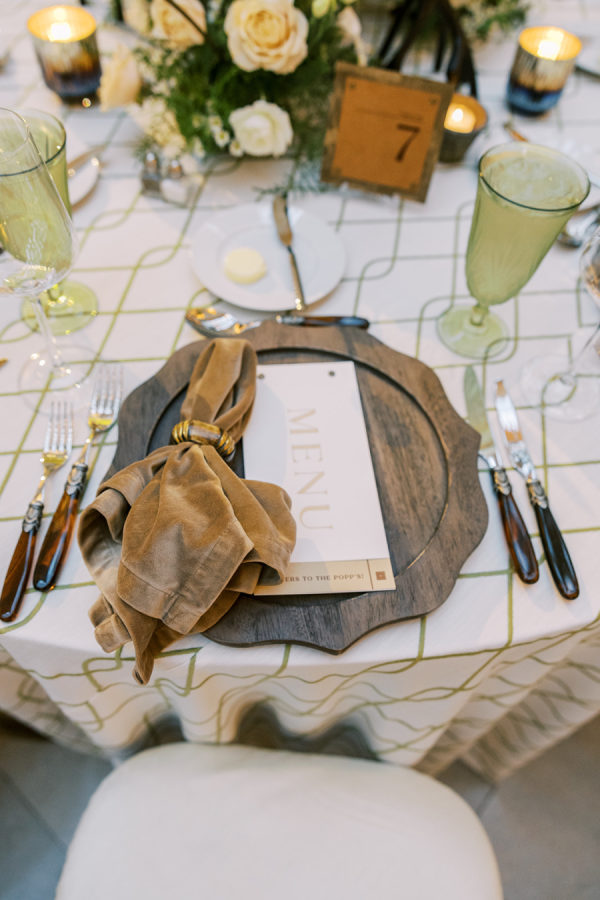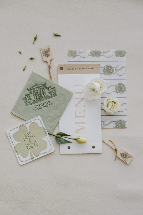 Alex’s favorite element from the decor was all of the signage and stationery details. Bayview Printing Co incorporated leather elements into the ceremony card, stir sticks, table numbers and even bar menu which was an extra special touch to the couple as it was different than anything they’d seen before.