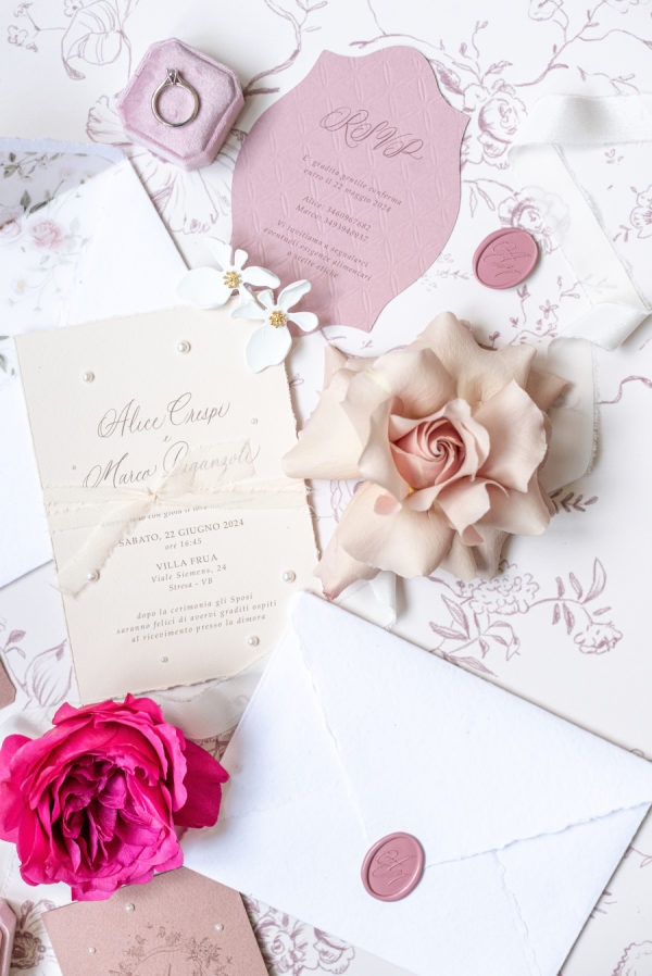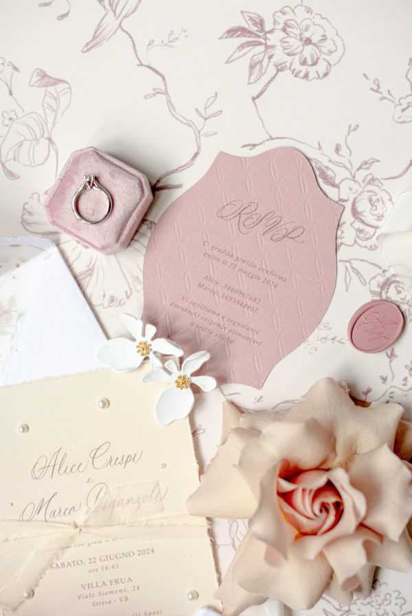 Alice and Marco dreamed of a wedding that felt both elegant and modern, an intimate celebration filled with beauty, generosity, and personal meaning. We broke free from the traditional “all white” aesthetic, embracing rich summer hues that felt warm and joyful, yet elevated. The venue, nestled in the lush landscape of Stresa on Lake Maggiore, inspired details like fresh lemons, apricots, and pears on the tables, a nod to the citrus trees surrounding the villa. Every design element reflected their refined, heartfelt style: custom table linens with a delicate green floral-and-bird motif, chandeliers dripping with greenery, hand-placed pearls nestled into orchids, and name cards individually adorned with delicate embellishments. The floral arch, circular and embracing, represented love and togetherness. This was a celebration of love in its purest form — intimate, intentional, and absolutely unforgettable.