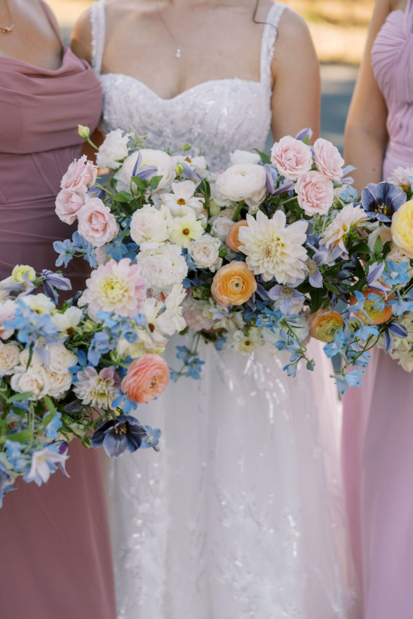 The wedding palette was a romantic blend of soft pinks, muted purples, fresh greens, and classic whites. These tones came together to create an elegant yet whimsical atmosphere that perfectly reflected the couple’s vision.