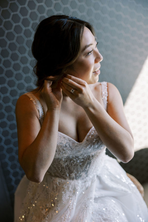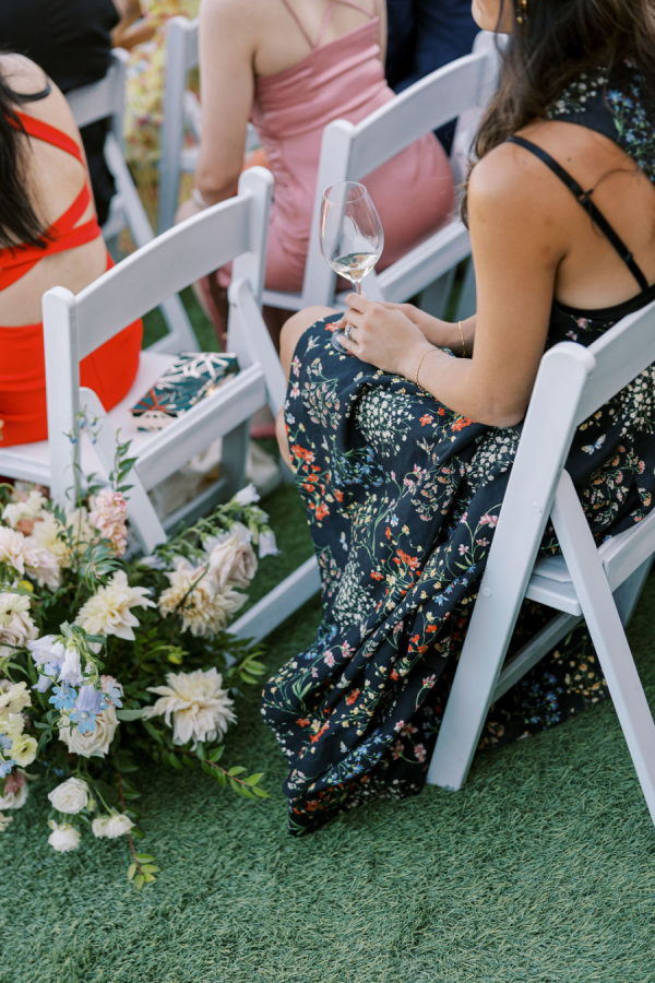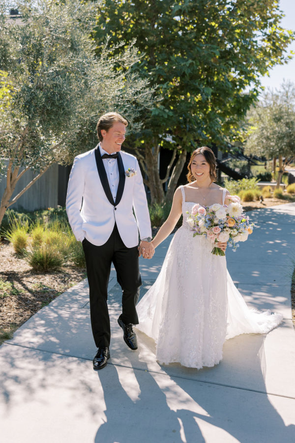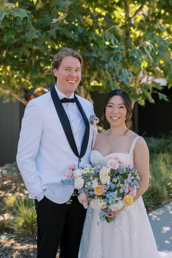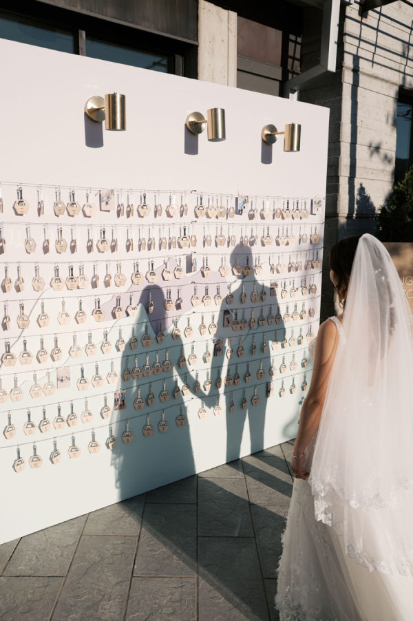 The design of Ayana and James’ wedding was a stunning fusion of elegance, cultural celebration, and personalized detail. Set against the rolling vineyards of Napa Valley, the ceremony embraced the natural beauty of the location. Guests were greeted by panoramic views and an aisle lined with vibrant, garden-style florals in shades of pink, purple, green, and white. The soft afternoon light enhanced the romantic aesthetic, making the vow exchange feel intimate and ethereal. To reflect their heritage and surprise their guests, the couple incorporated a dynamic Lion Dance performance immediately following the ceremony. This moment not only energized the celebration but also served as a joyful escort to the dinner reception, infusing tradition with a modern, unexpected twist. Personal touches were woven throughout the design, including a nod to the couple’s love for skiing. The seating chart featured custom gondola-shaped beer openers, thoughtfully designed by Shimmer + Stain. These creative favors were both meaningful and functional, adding a playful yet curated element to the overall aesthetic. The reception was nothing short of magical. Cascading floral installations brought drama and movement to the space, particularly at the bar, where blooms poured down in a luxurious display. Ayana captivated guests with three outfit changes, each more glamorous than the last, while James took the stage for a surprise musical performance that left a lasting impression. Under a canopy of lights and flowers, guests celebrated with joy, dancing late into the night in a space that was designed to feel as lively, loving, and unforgettable as the couple themselves.