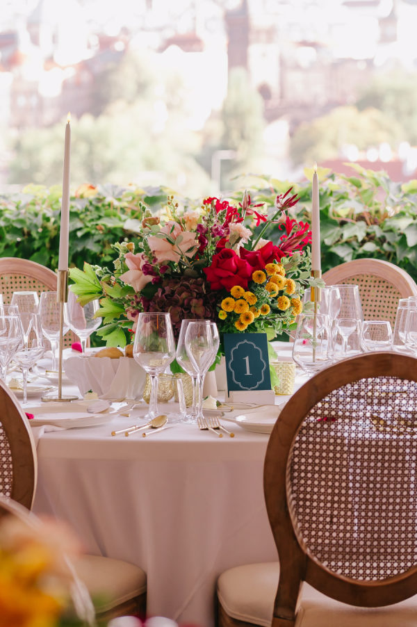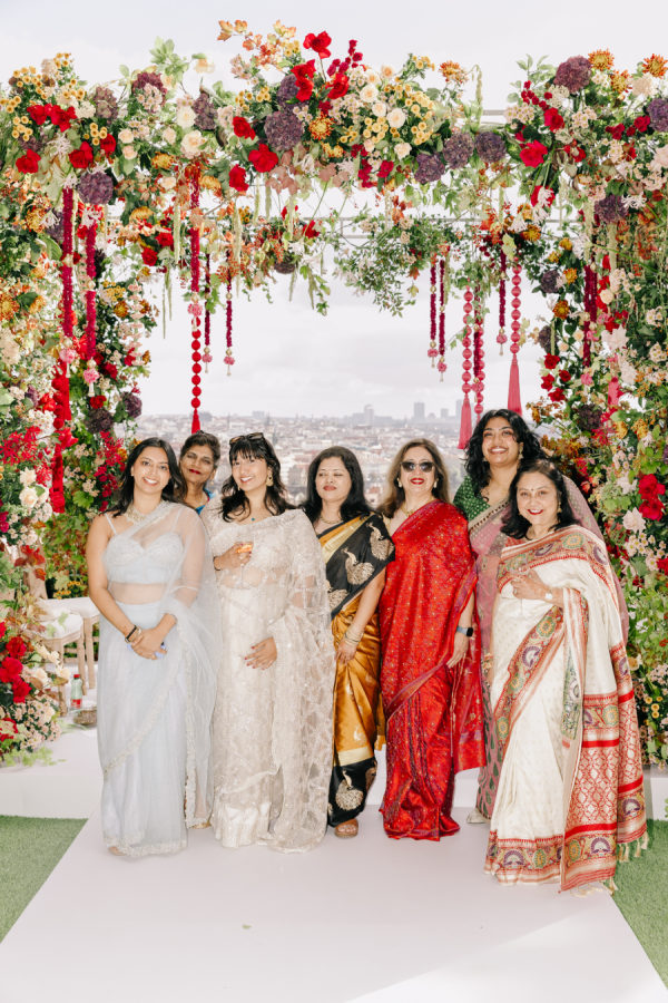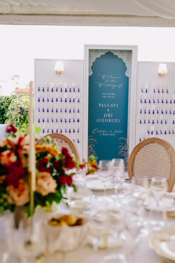 The bride and groom set out to weave together elements of their Indian and Czech cultures throughout their wedding celebrations. The wedding festivities began with a sangeet held aboard a boat on the Vltava River, where guests danced while taking in views of Prague. The wedding day featured a Czech civil ceremony followed by a Hindu ceremony, overlooking the beautiful and historic city. During the reception, the bride and groom shared a speech in both English and Czech and took part in a Czech tradition in which a plate is broken, and the couple cleans up the pieces together, symbolizing partnership and cooperation. The celebrations concluded the following day with a historic tram ride through Prague.