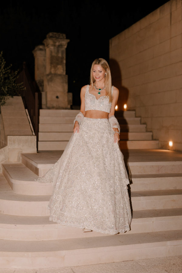 Growing up British in Dubai, with bridesmaids from five different countries, and marrying an Indian man who spent over 15 years in the U.S., it was inevitable that our wedding would be a beautiful celebration of cultures. We chose Italy as our destination—a neutral venue we both adore for its stunning landscapes and incredible food. As someone obsessed with the ocean, a city on the water was non-negotiable for me. We also wanted a venue that allowed outdoor partying past 11 PM, fireworks, and the ability to bring our chefs for at least one meal. For my husband, serving authentic Indian cuisine was a must. Additionally, we sought a venue with accommodations to simplify logistics for our guests. Our search led us to Puglia, a region we had recently fallen in love with during a weekend getaway. At the time, Puglia wasn’t a popular wedding destination, with limited information online. Over the last 15 months, though, it’s wonderful to see its popularity grow! We decided on a three-day celebration to honor our guests, who traveled from all over the world. The festivities included a welcome evening in a historic square in the city center, a traditional English wedding day at Castello Monaci, and an Indian Sangeet-style party at Chiostro Dei Domenicani. We chose to stay at the Chiostro, as its modern rooms were perfect for hosting our bridal party and close family members.
