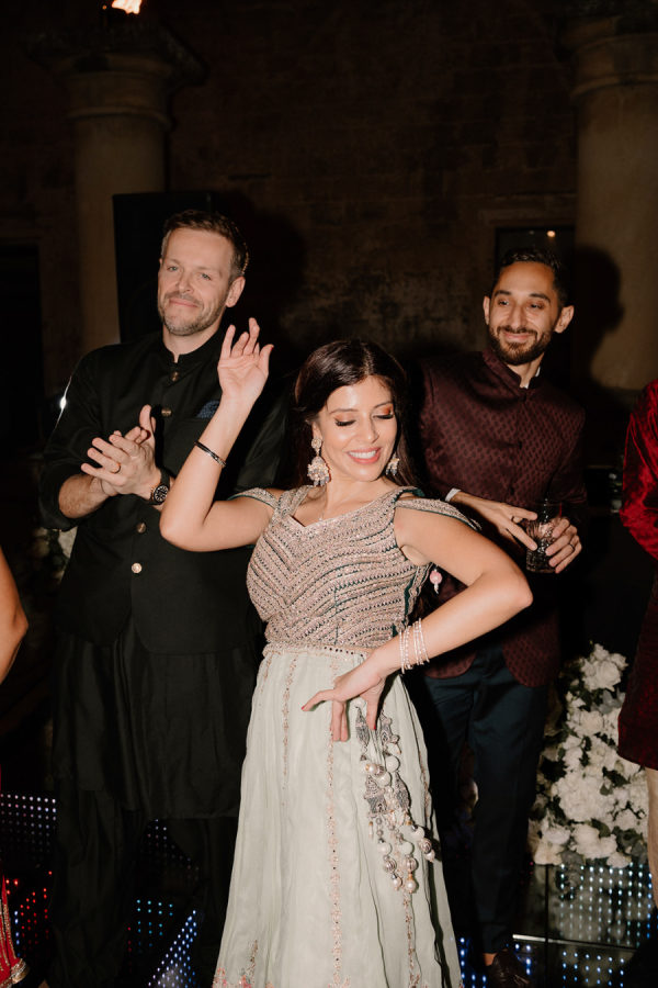 My husband’s first thought when planning the Sangeet was that the dhol player would be key. He conducted extensive research and ultimately flew in Nihal Singh, who came highly recommended by friends. Nihal’s performance brought unparalleled energy and life to the celebration!