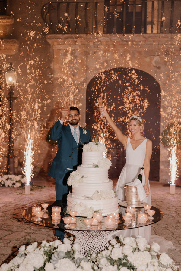 Hayley, a Consultant Dermatologist & Dermatological Surgeon, and Gaurav the Corporate Vice President for Microsof, living Living in Marylebone, London went for a timeless white against the beautiful natural backdrop of greenery that Castello Monaci offered.