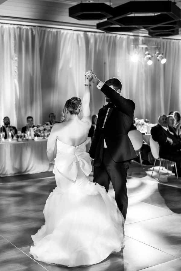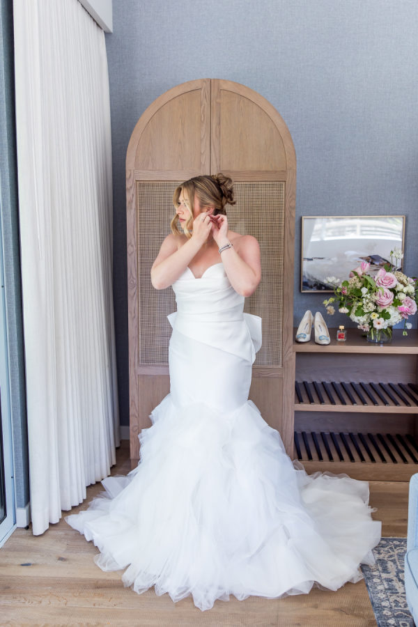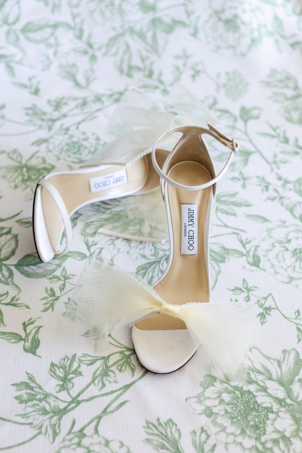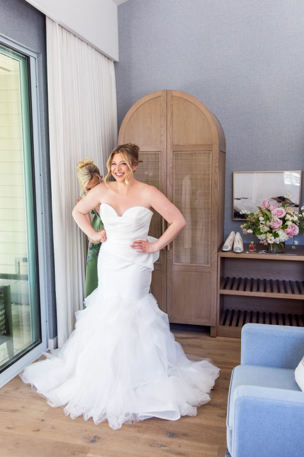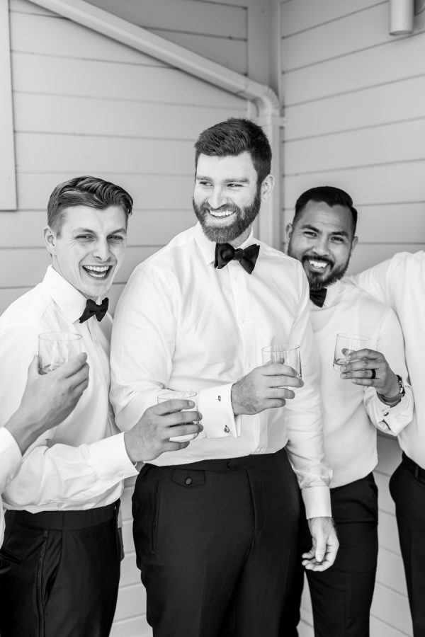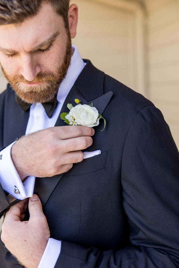 Josie was stunned in a dramatic mermaid dress from Vera Wang. As she recounts, “I have always loved bows (before they were trendy), so I knew that I would walk down the aisle with a bow somewhere on my dress. To my surprise, the dress I cried in and fell in love with did not have a bow. I, of course, had to add one to put my own touch on it. I have never felt more beautiful in my life!” Later in the evening, she changed into a babydoll mini dress for the reception — complete with feminine ruffles and bows, of course.