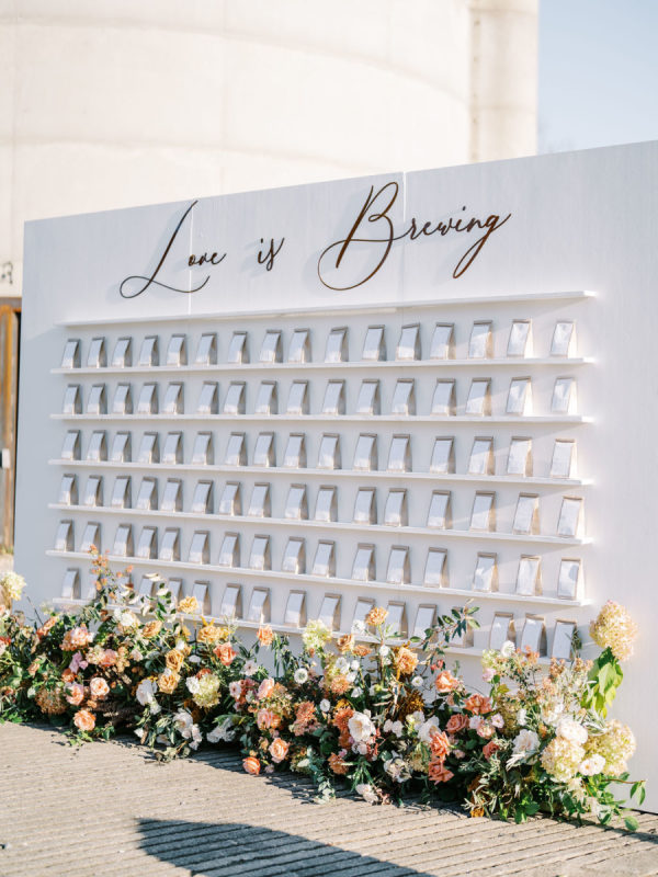 [field title=”Food & Drink”]The guests transitioned to cocktail hour, where one of the couple’s greatest shared interests was on full-display: coffee. An equestrian-trailer turned latte bar was an absolute hit in the crisp fall evening, and the guests were greeted by a show-stopping escort display that also served as personalized favors. The “Love is Brewing” escort display featured customized bags of the couple’s favorite blend, as well as the story behind this personal touch and the dog rescue donations made by it. An alcohol-free event, Taylor and Jordan took the opportunity to provide guests with a full menu of signature mocktail options. Guests also enjoyed a gorgeous, multi-course spread of autumn-inspired cuisine by Spilled Milk.