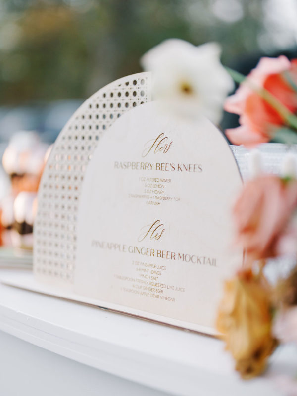 [field title=”Special Detail #1″]Taylor and Jordan wanted to incorporate their dog Olive into the day as much as possible while maintaining an air of sophistication. She was not only present for much of the celebration, they found smaller ways to pay tribute to her in the design of their wedding— from the custom drink signs “olive you a latte,” to the olive branch wallpaper on the bars and band backdrop to the custom cocktail napkins and dog cake topper, their furry family member was celebrated alongside the couple themselves! [/field]