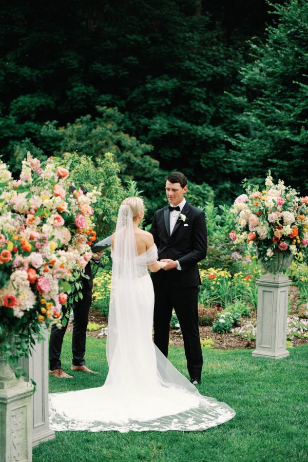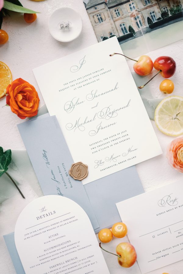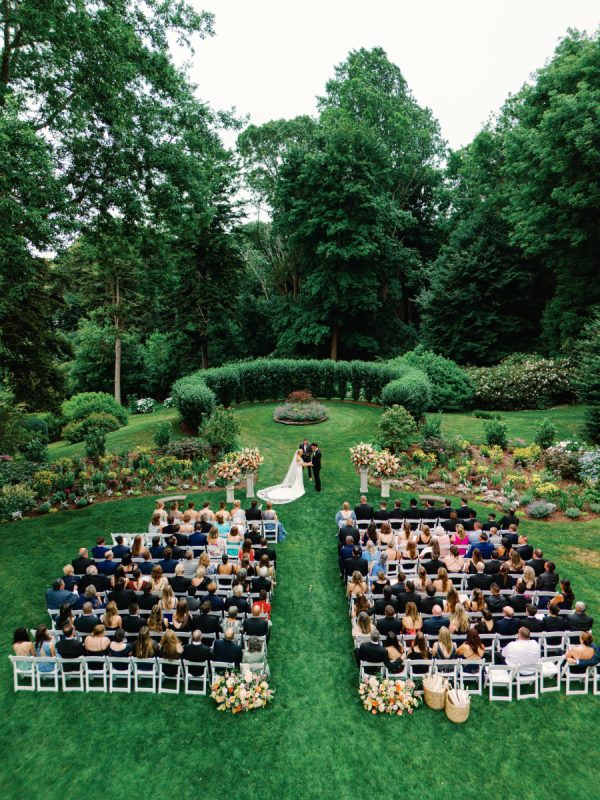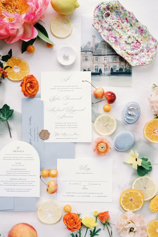 Michael and Dylan’s equestrian romance culminated in a wedding day at Glen Manor, the same venue where they first met. It boasted the effortless charm of a French Château with fresh countryside styling. The stunning property rested along the banks of the Sakonnet River in Rhode Island, offering sweeping views and lush outdoor gardens.