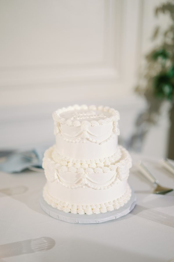 After cutting a mini Lambeth cake, the couple served a dessert spread for the evening included parfaits, macarons, and cannoli.