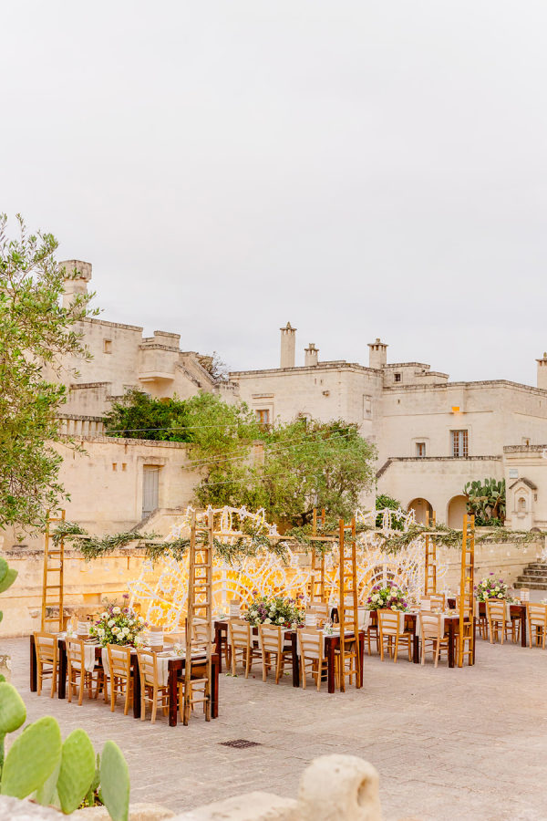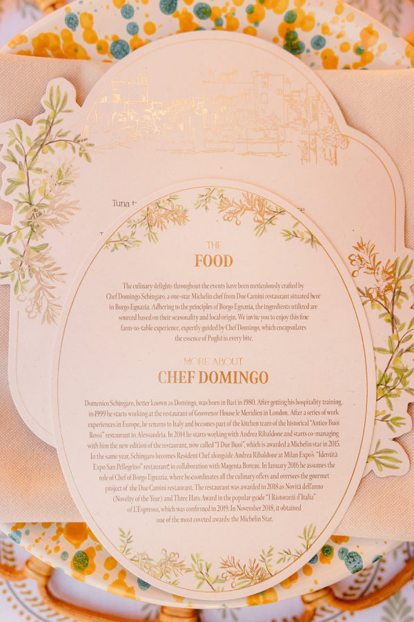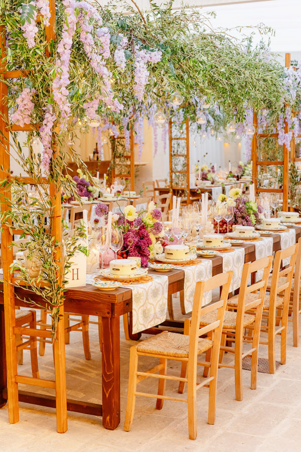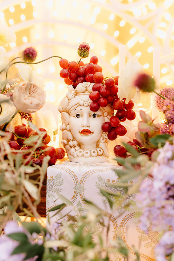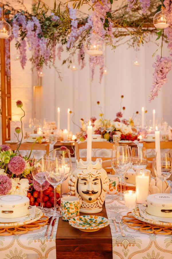 Inspired by the colors of the Italian countryside, the wedding color palette consisted of muted pastels like sage, ivory, mauve, and champagne. After the ceremony, the colors became slightly more saturated, incorporating pops of terracotta, lavender, red, and mulberry.