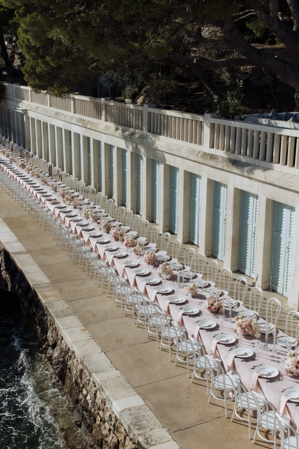 We wanted our reception design to mirror the linear layout of the Beach Club and to seat all our guests at a single, long table. The planners and design team did such an amazing job accommodating 145 guests at one table, and it was wonderful to see all our friends and family seated together throughout the evening while we listened to speeches and celebrated.