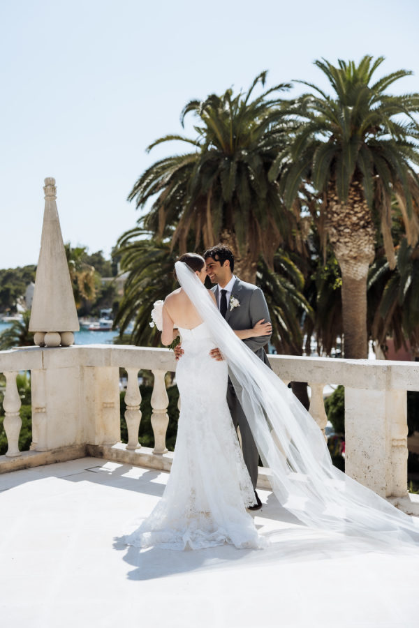 Photography: Martina Skrobot Photography | Event Design: Showroom design & Events | Event Planning: Promessi Weddings & Events | Floral Design: Showroom design & Events | Wedding Dress: Monique Lhuillier | Cake: Sweets Pastry Shop Hvar | Ceremony Venue: Beach Club Hvar | Reception Venue: Beach Club Hvar | Catering: Beach Club Hvar | DJ: Cotton Lifestyles | Groom’s Attire: Zegna, Testa Uomo | Ceremony music: Floramye Strings Quartet | Accomodations: San Marco Terrace, The Palace | Beauty: Institute | Beauty: Estera Tolusic Make up Artist | Content Creator: Reborn | Ice cream: Aroma Gelato | Lights: Light Sound Design | Live painter: Kristinka Lazar | Photography – Assistance: Katarina Radonic | Rehearsal Dinner Venue: San Marco Terrace, The Palace | Rentals: Showroom design & Events