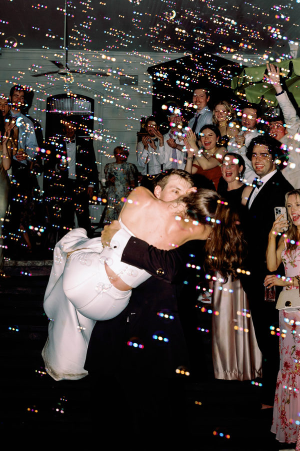 One of the most unforgettable moments of the day was the Second Line, a beloved New Orleans tradition. Directly following the ceremony, a brass band led Skylar and Eli and all their guests from The Columns down St. Charles Avenue, parading from the ceremony straight into the reception. Dancing down the streets and celebrating surrounded by music, laughter, and the people they love most perfectly captured the spirit of New Orleans and the joy of the day. Congratulations and cheers from the locals passing by were also a special touch.