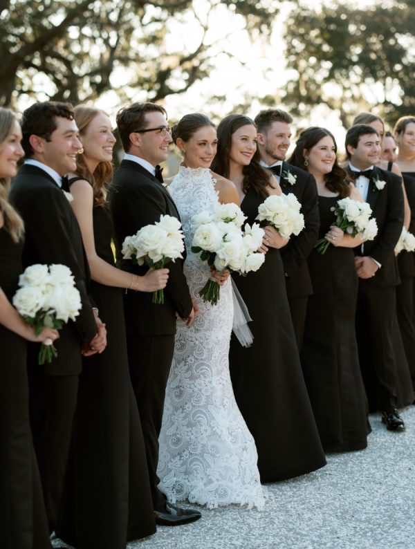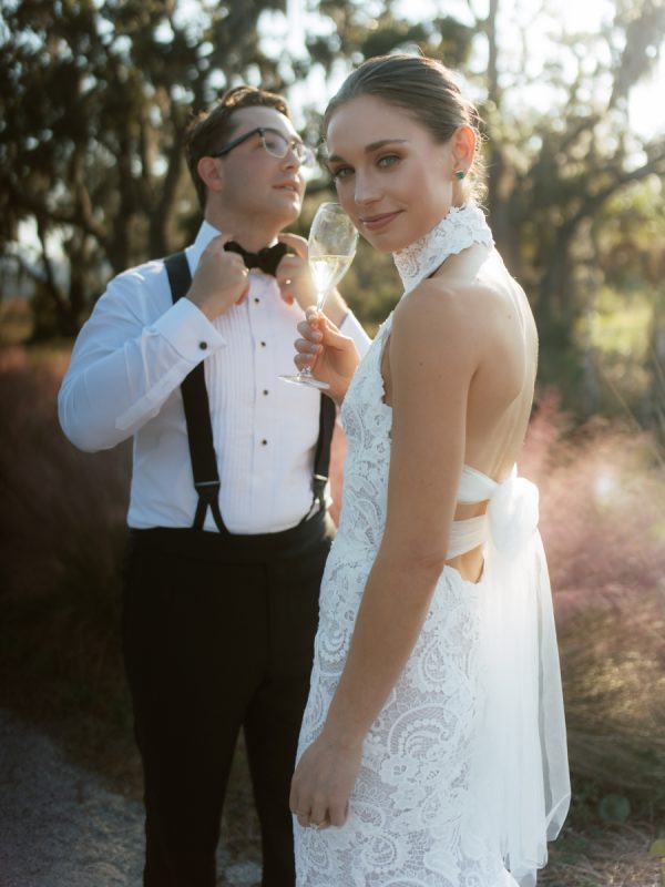 Rebekah and Benjamin originally planned to wed at The Biltmore, but after Hurricane Helene devastated the Asheville area, they were forced to pivot. With only three weeks until the big day, their planner worked tirelessly to redesign the wedding and redirect the vendors to South Carolina, as well as having to bring aboard a few new vendors on board, given the devastation of the hurricane and the new location. They discovered the newly-completed Dunlin on Johns Island, which ended up being the perfect alternative. “The venue was so stunning that we barely had to do anything in terms of decor, but what we did add transformed it into exactly what we had dreamed of,” they shared. Accented by a southern sunset along the river and framed by dramatic veils of Spanish moss, the charm of their new venue came to life.