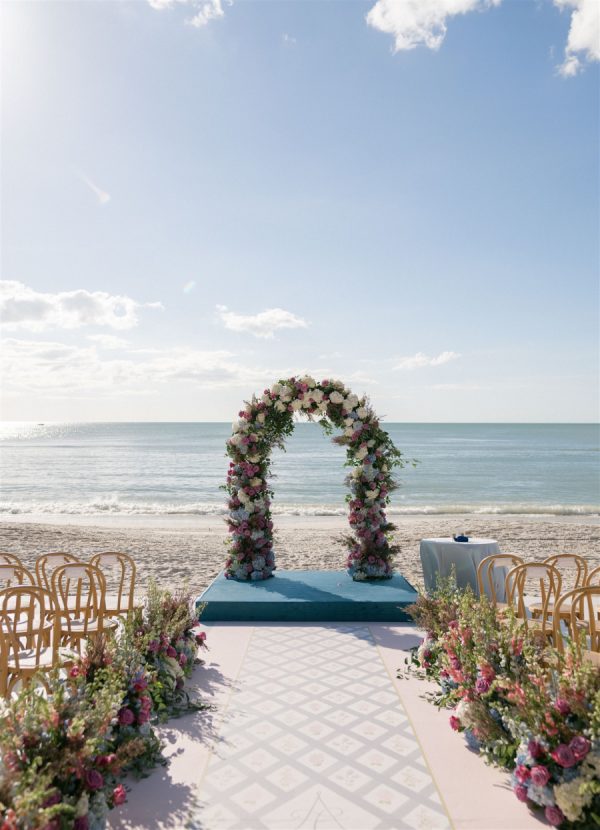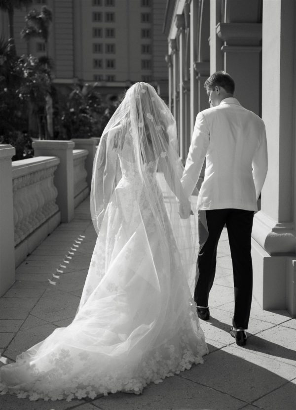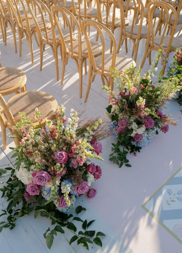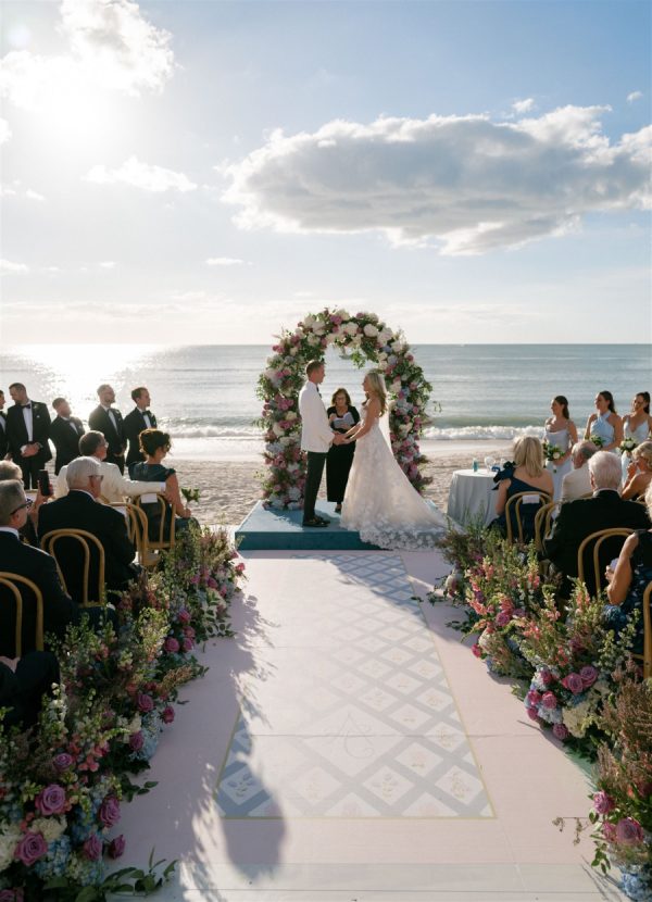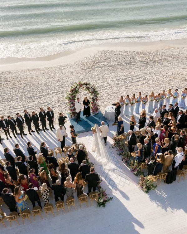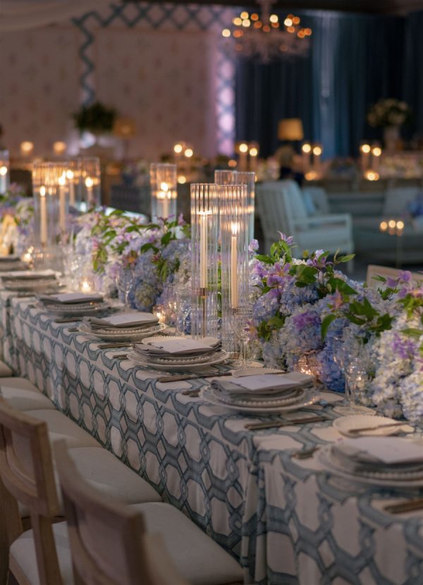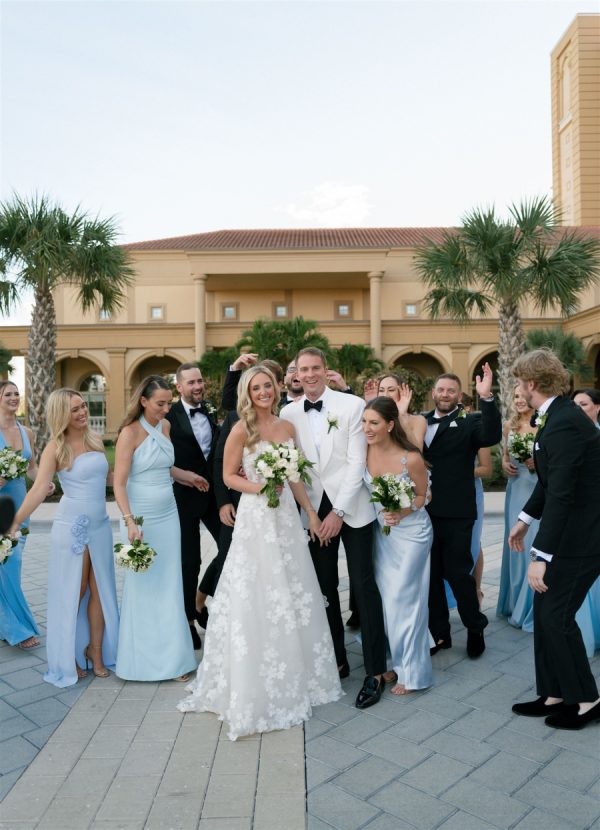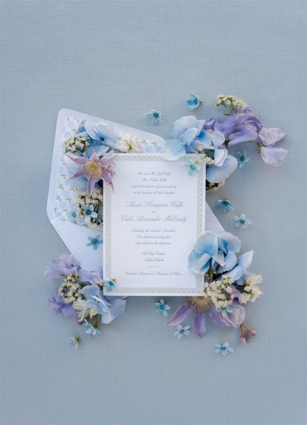 Just three weeks before their wedding, Hurricane Helene and Milton left this couple’s original venue in ruins. What could have been devastating instead became a story of resilience and beauty as their dream celebration was seamlessly reimagined at The Ritz-Carlton Naples. With extraordinary vision and calm under pressure, their planner and creative team transformed uncertainty into elegance, crafting a wedding that felt timeless, intentional, and meant to be all along. It was a day that beautifully reflected both the sophistication of Naples and the enduring joy of a love that could weather any storm. In imagining the design and overall vision, the couple wanted their big day to embody the spirit of Naples—a seamless harmony of coastal ease and timeless sophistication. Drawing inspiration from the city’s turquoise waters and lush palms, a palette of soft blues and greens set the foundation, grounding the event in its natural surroundings. Delicate layers of blush and lavender were woven into the florals, adding a romantic whimsy and subtle depth to the overall aesthetic. The result was a look that felt both organic and intentional: fresh, airy, and evocative of Naples itself, while still carrying the elegance and refinement of a destination-worthy wedding.