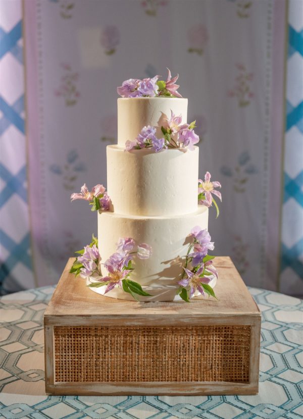 A classic three-tier design was wrapped in smooth ivory buttercream, its simplicity elevated by the artful placement of fresh blooms in soft lavender and blush tones. The delicate florals cascaded organically around each tier, echoing the whimsical romance woven throughout the day’s design. The couple couldn’t choose just one favorite during their cake tasting; they loved every flavor they sampled! Their three-tiered cake featured a refreshing white cake with Florida key lime mousse, a rich chocolate cake with chocolate mousse, and a tropical pineapple cake filled with cream cheese icing, all finished in a smooth buttercream frosting.