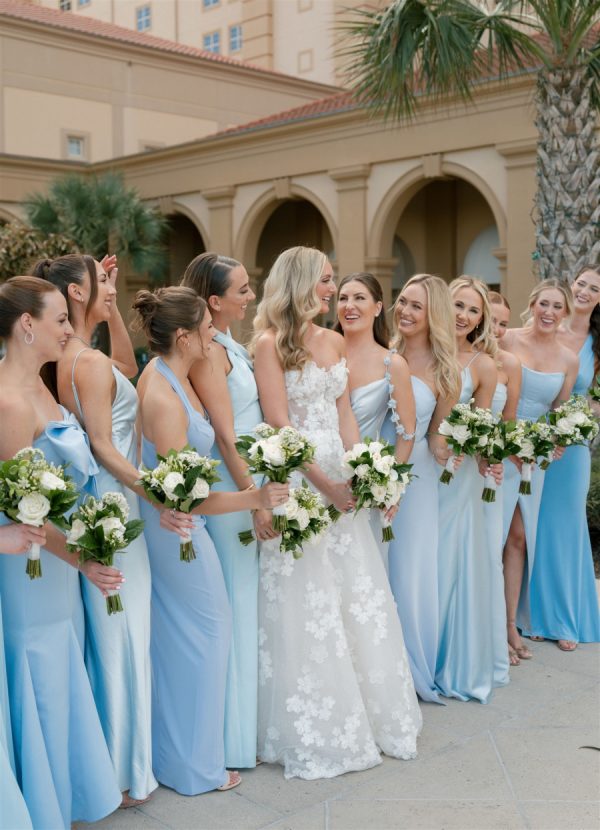[field title=”Bridesmaid Dresses”]Each bridesmaid wore a different designer gown in shades of light blue. “I wanted each of my bridesmaids to be in their own unique dress that they felt their best in!”[/field]