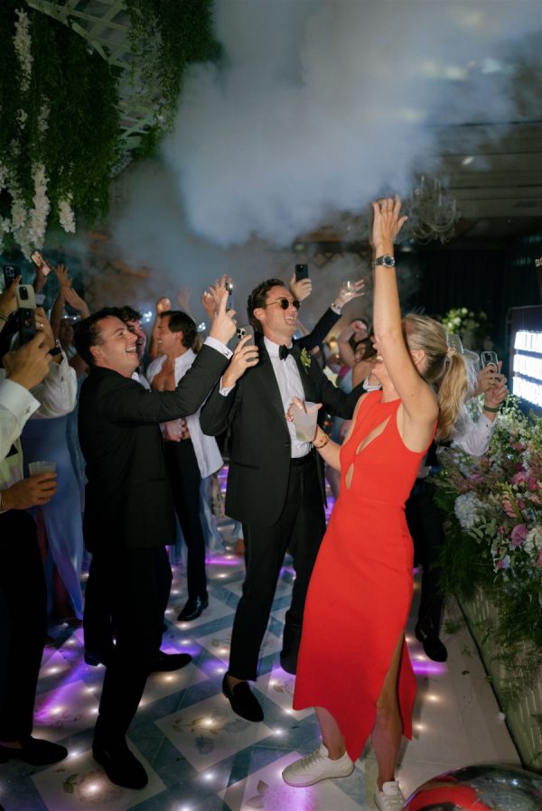 [field title=”Special Detail #2″]My husband and I wanted to transition our guests from our Reception to a surprise After Party. At the end of our Reception, we went out to the terrace for fireworks and a Champagne Saber by the groom. Guests thought that was the end of the evening, but in reality during the fireworks my planner Anna and her team were transforming the Reception Room to an After Party Night Club Room with a DJ, LED dancefloor, dancers and LED robots, espresso martinis, etc. The guests were so excited to continue dancing the night away and celebrating! [/field]