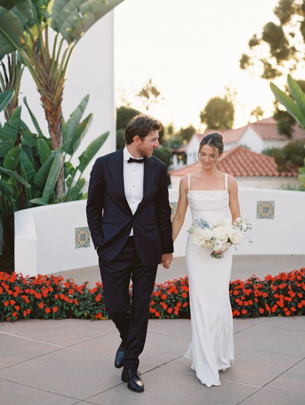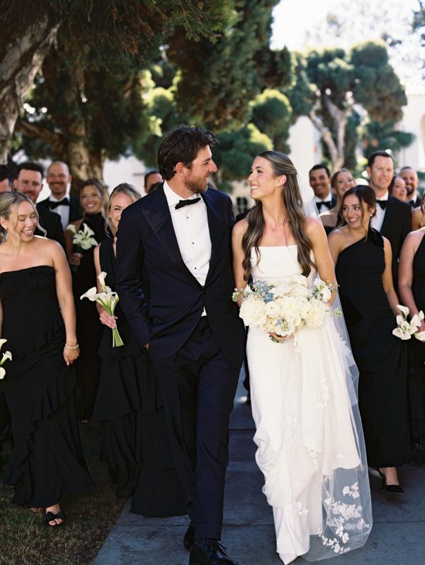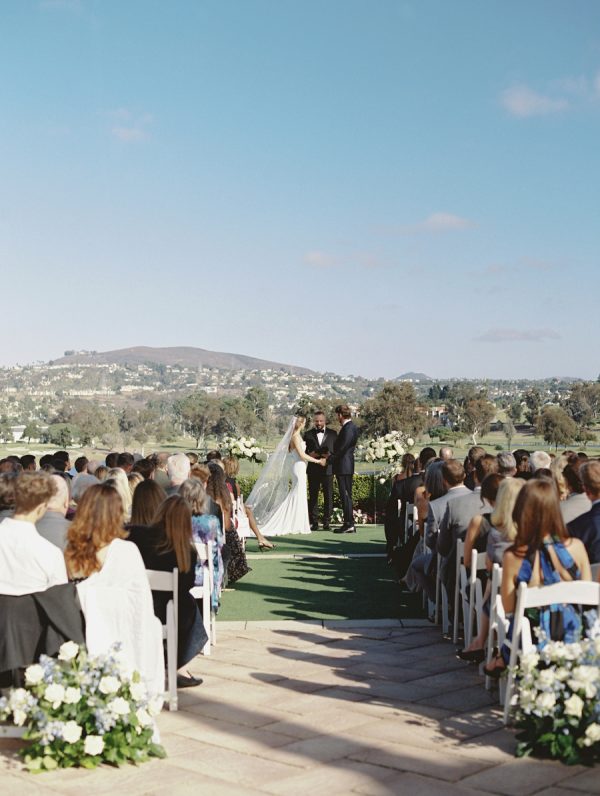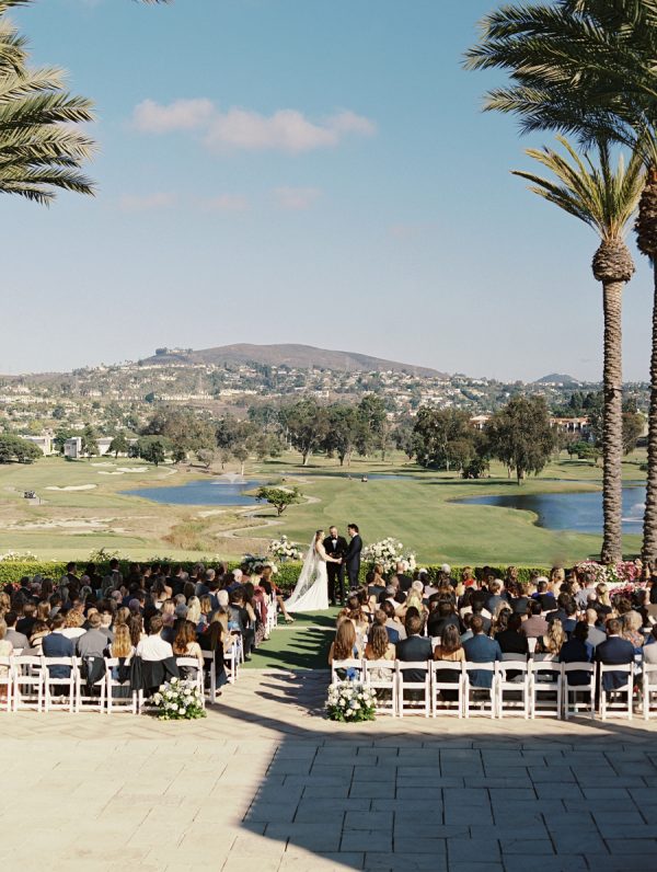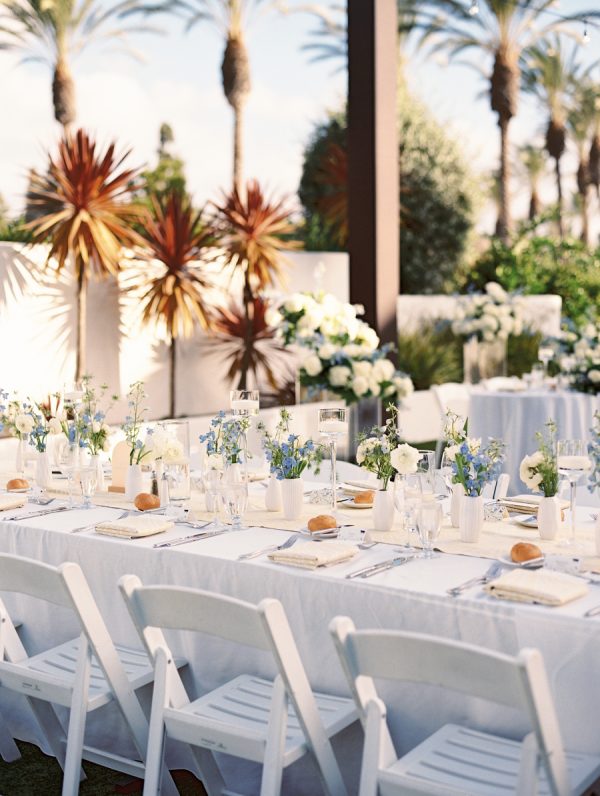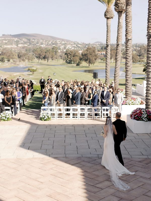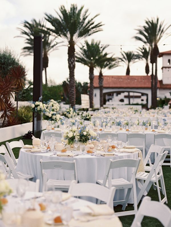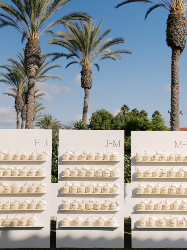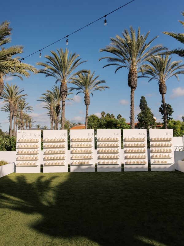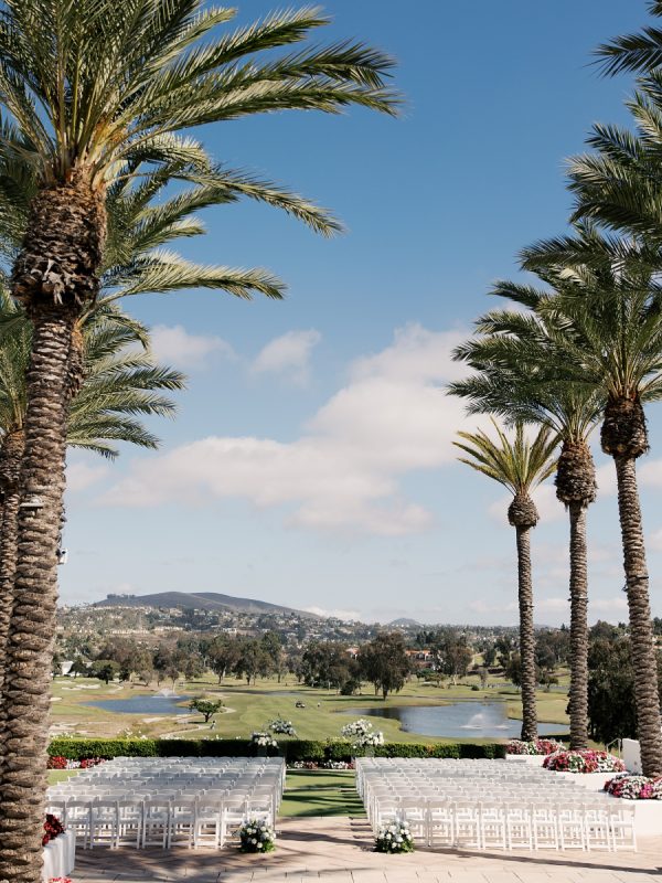 My vision was to keep everything very clean and timeless. We were fortunate to have great weather and be outside in San Diego for the entire event, where I knew we would have beautiful palm trees, greener,y and architecture from our venue that I didn’t want to override with a “theme”. I wanted the beauty of the venue and the clean aesthetic of a timeless wedding to seamlessly come together – and it executed well!