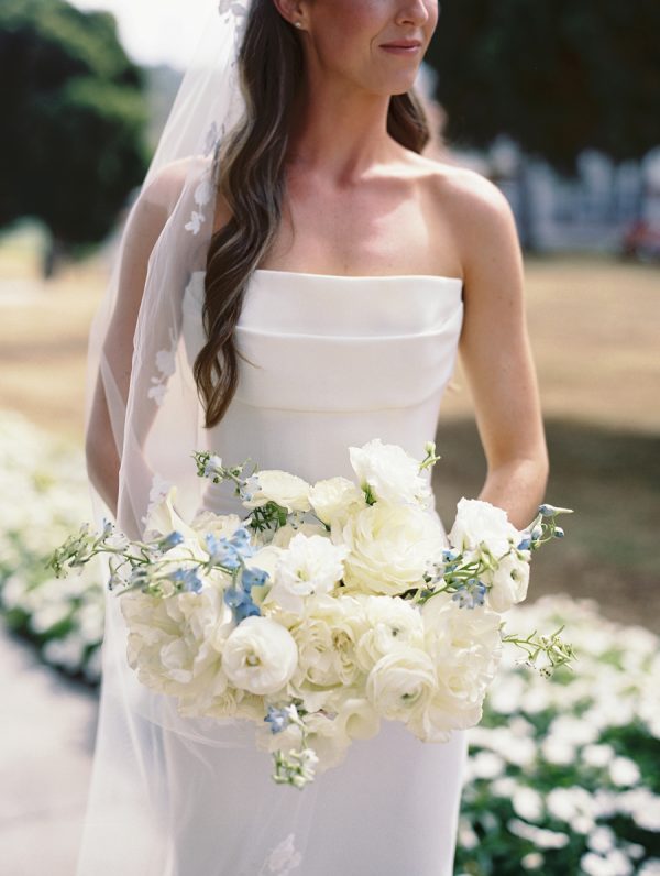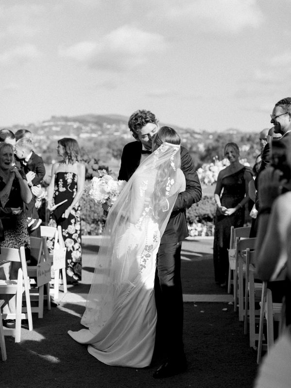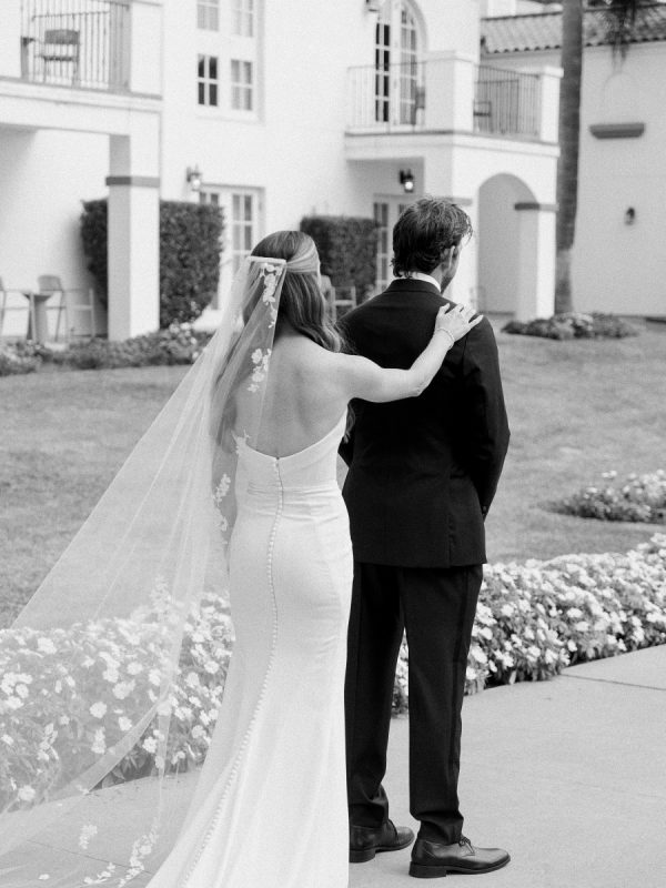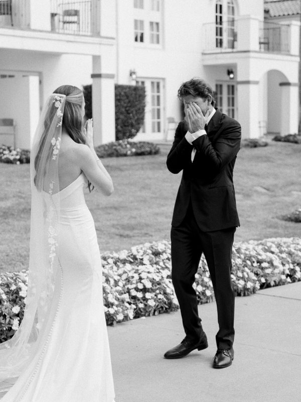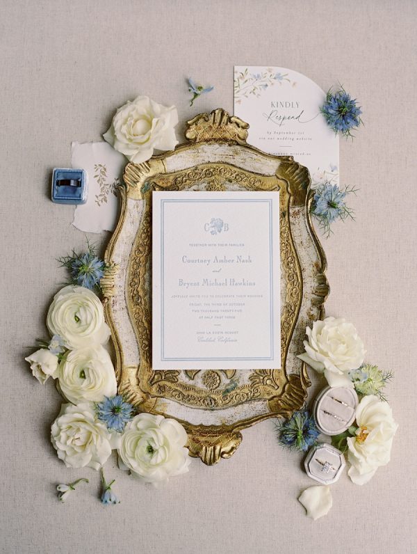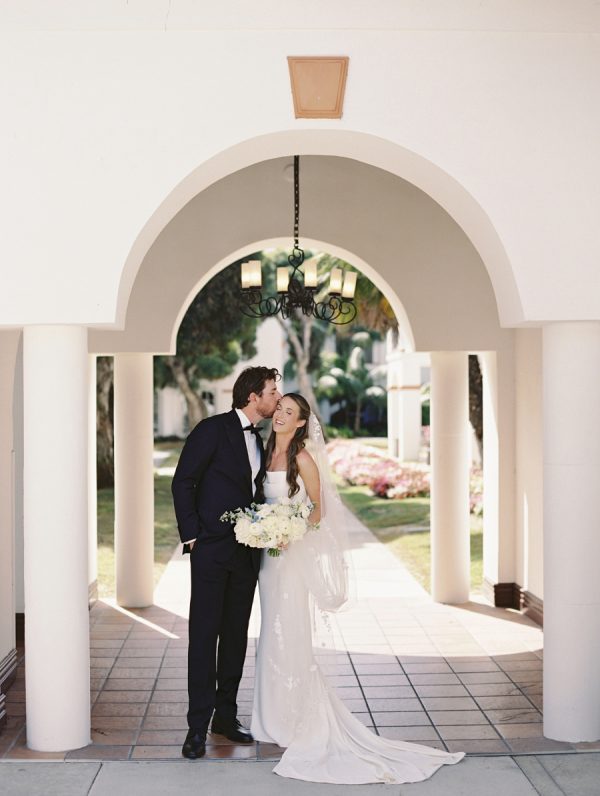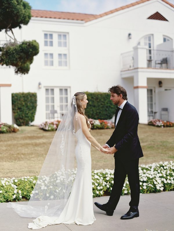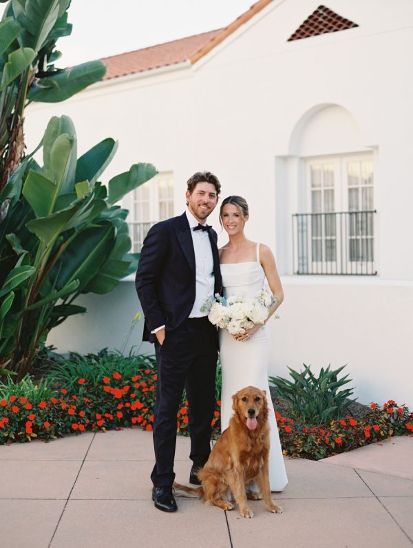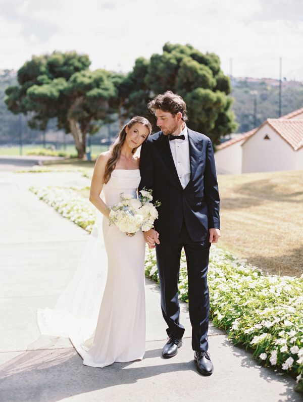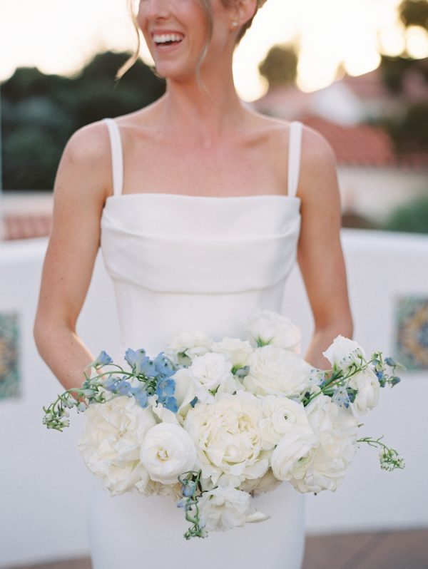 My vision was to keep everything very clean and timeless. We were fortunate to have great weather and be outside in San Diego for the entire event, where I knew we would have beautiful palm trees, greener,y and architecture from our venue that I didn’t want to override with a “theme”. I wanted the beauty of the venue and the clean aesthetic of a timeless wedding to seamlessly come together – and it executed well!