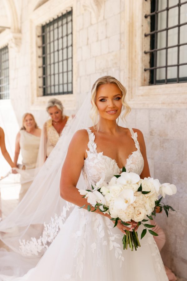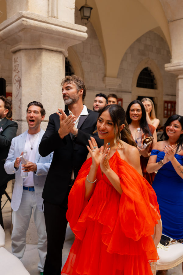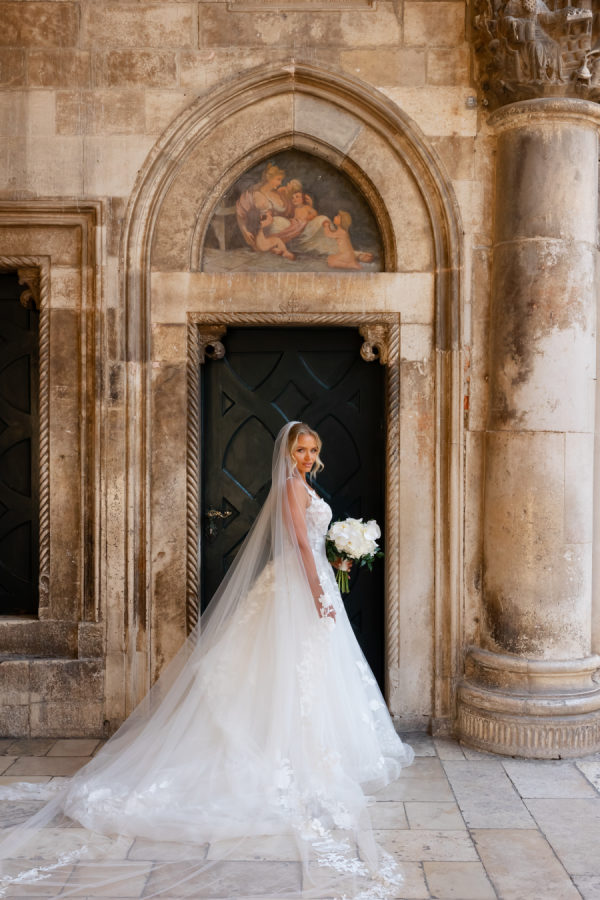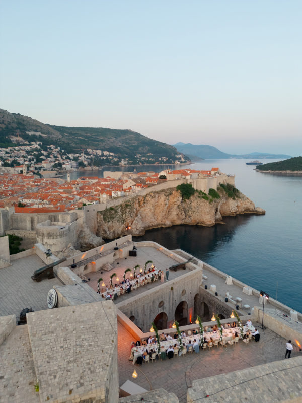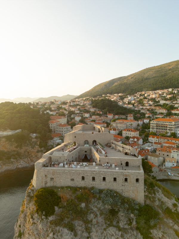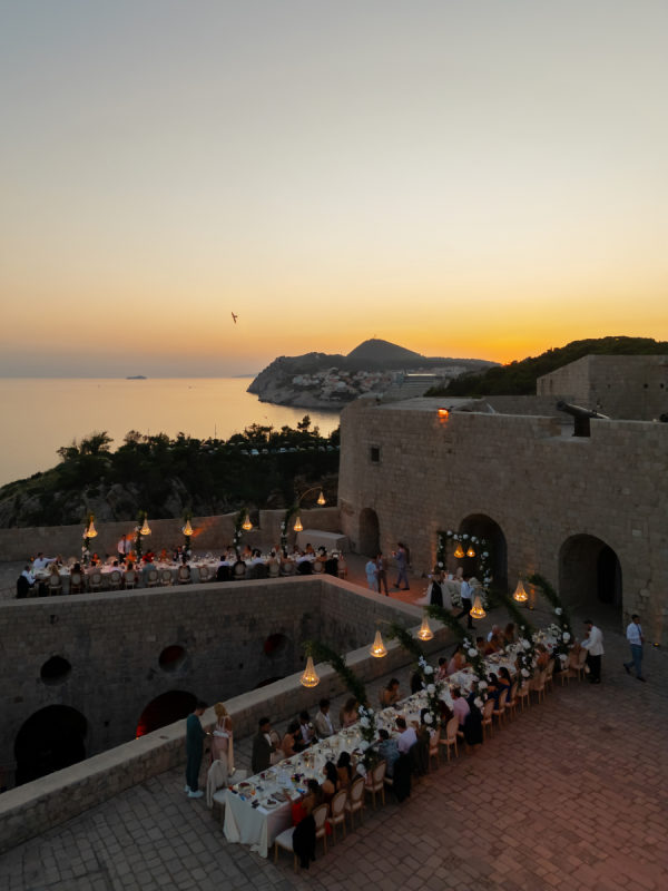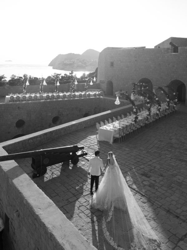 [field title=”Special Detail #1″]Although neither of them are from Croatia, Veronika had always dreamed of being married in a castle. She visited Dubrovnik with her family in 2017 and ironically, toured both Sponza Palace and Fort Lovrijenac. When the guide casually mentioned that the fortress could sometimes be rented for weddings, her eyes lit up. She fell in love with this location way back then, but could never dream it would one day also be her wedding venue. For the couple, who are fans of Game of Thrones, it was also a playful easter egg to host their celebration in the real-life King’s Landing. [/field]
