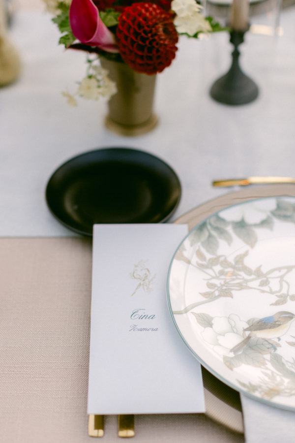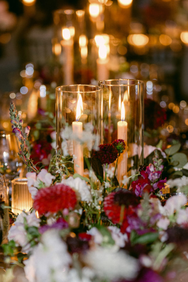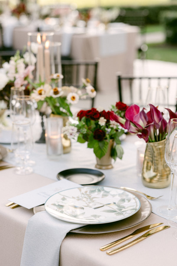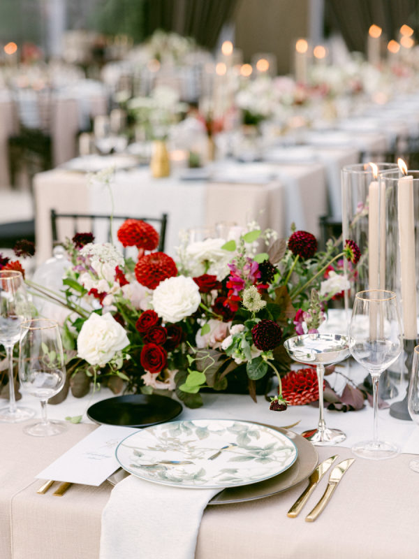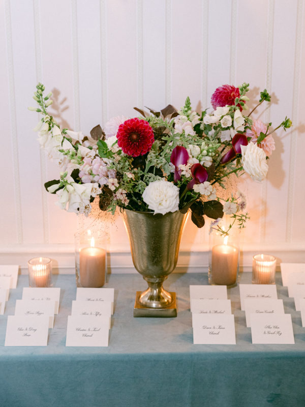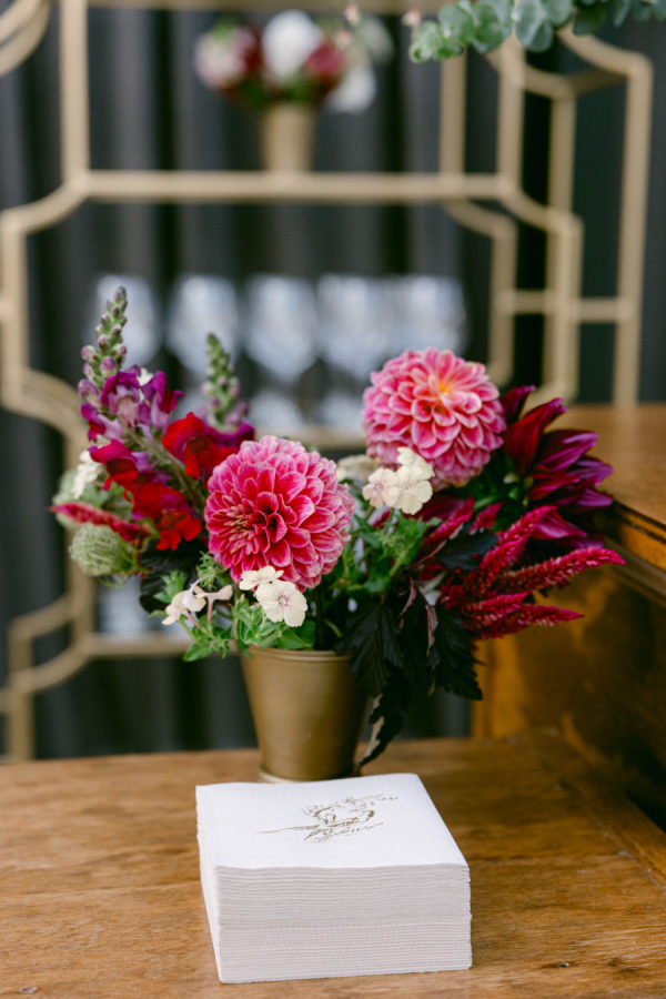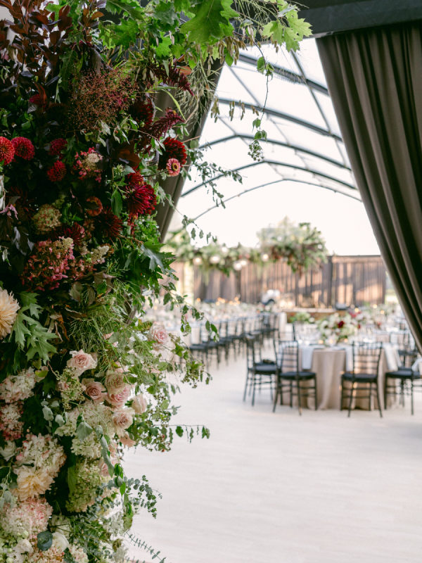 When I first met with our wedding planner, Daulton, I did not have a fully formed vision. I only knew I wanted the day to feel like a “moody garden party,” something colorful and romantic that did not rely on traditional bridal palettes. From that simple idea, she created a design that completely transported us. What she brought to life felt like stepping into an intimate black-tie dinner in the world’s most enchanting garden. The tent structure, the lush and textural florals, and the thoughtful accents inspired by the venue’s wallpaper all came together to create an immersive and unforgettable experience.