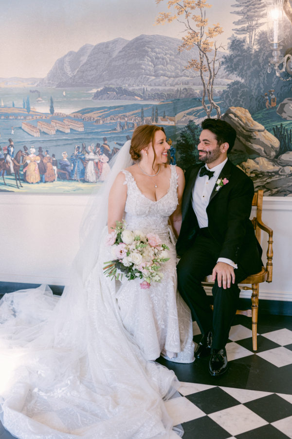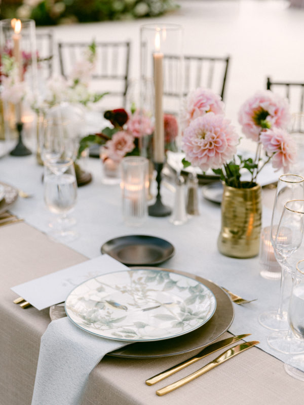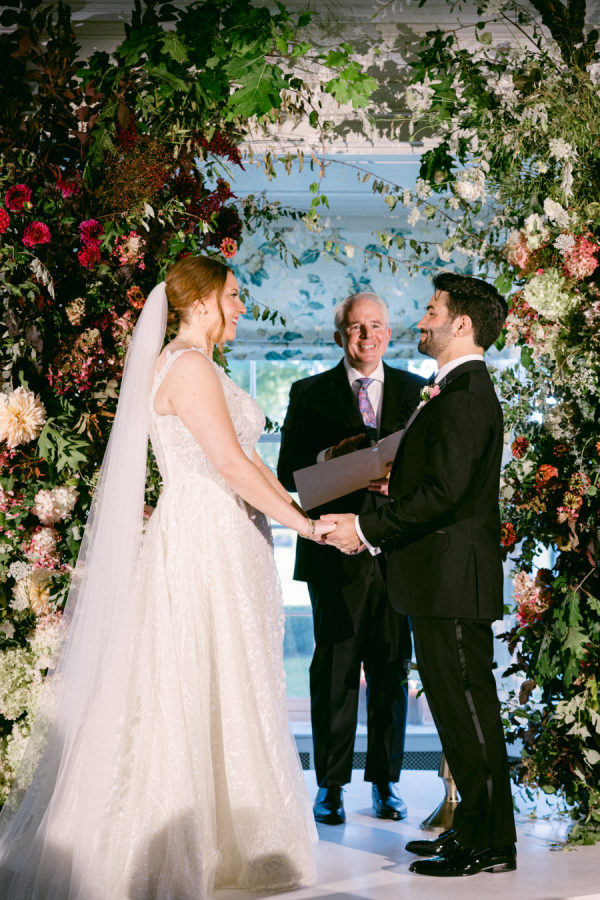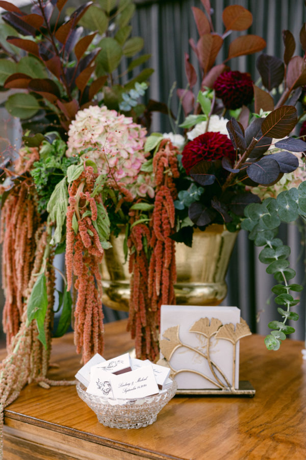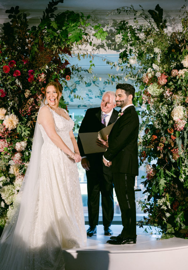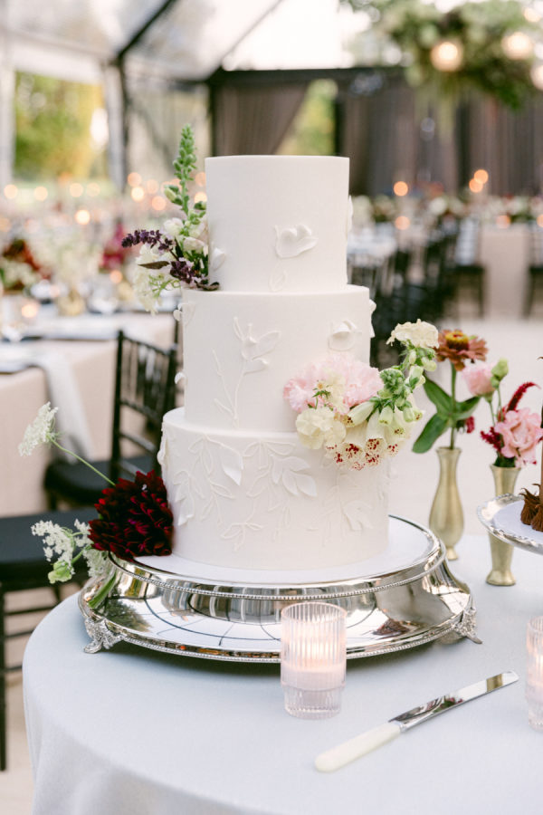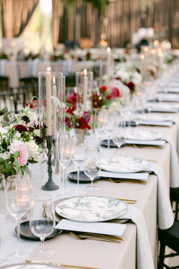 When I first met with our wedding planner, Daulton, I did not have a fully formed vision. I only knew I wanted the day to feel like a “moody garden party,” something colorful and romantic that did not rely on traditional bridal palettes. From that simple idea, she created a design that completely transported us. What she brought to life felt like stepping into an intimate black-tie dinner in the world’s most enchanting garden. The tent structure, the lush and textural florals, and the thoughtful accents inspired by the venue’s wallpaper all came together to create an immersive and unforgettable experience.