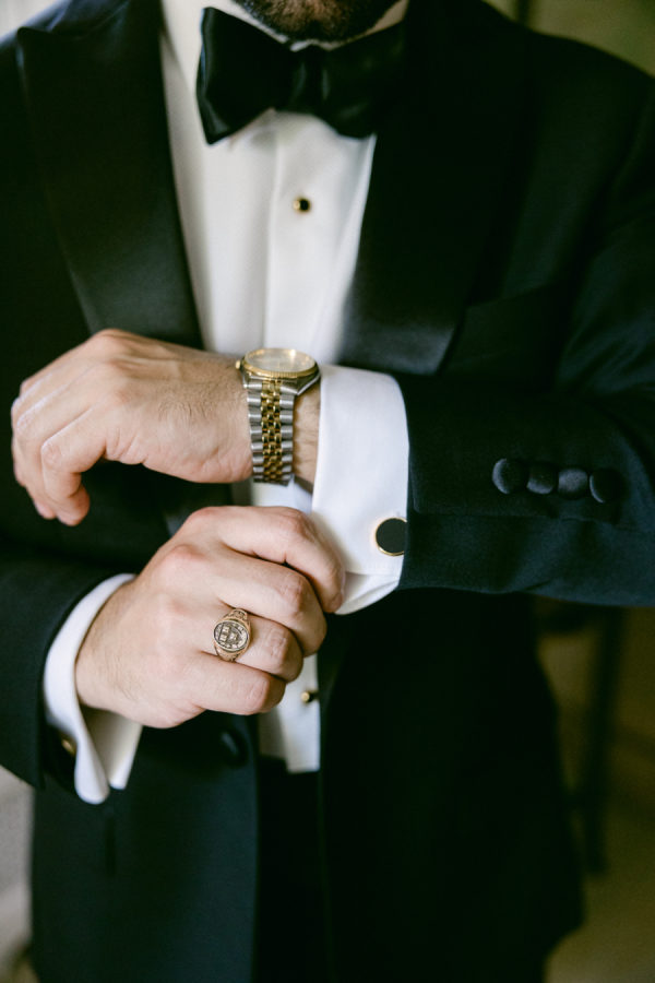 [field title=”Groomsman Attire”]The groom wore a classic tuxedo from Jos. A. Bank.[/field]