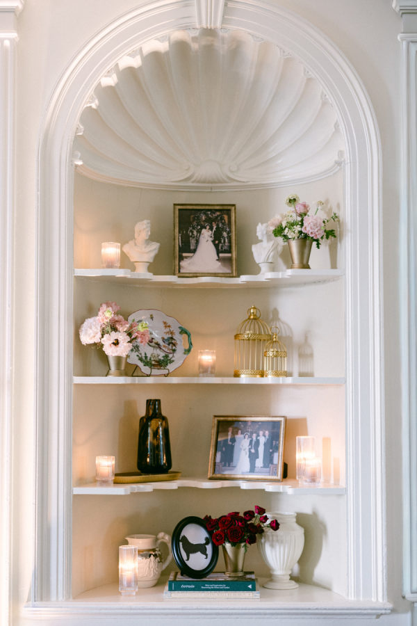 A subtle but deeply meaningful detail was incorporating framed photos of our parents’ and grandparents’ weddings into the décor. Daulton selected frames that blended beautifully with the design and styled them on bookcases during the ceremony, later moving them to the shelves behind the bar for the reception. They became a lovely conversation piece and a heartfelt tribute to the marriages that came before ours.