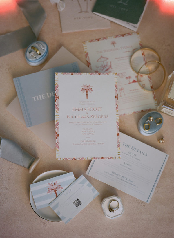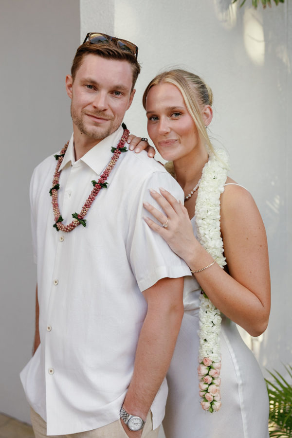 Emma and Nick met on Oʻahu at a college bar and first fell in love through their shared sense of adventure and deep appreciation for nature, spending their early dates kayaking to the Mokes, paddleboarding at the Kāneʻohe sandbar, and exploring the island together. Their love for Oʻahu became such a defining part of their story that it ultimately inspired their decision to get married there. During COVID, they moved to Maui to live with Emma’s parents, a season that strengthened their relationship and allowed Nick to become deeply integrated into her family, while also welcoming their beloved puppy, Theo. Later, they moved to Washington to build a life together, where Nick proposed atop a snowy mountain at Crystal, followed by a rainy celebration that ended beneath a breathtaking double rainbow, a moment that felt like the world affirming their love.