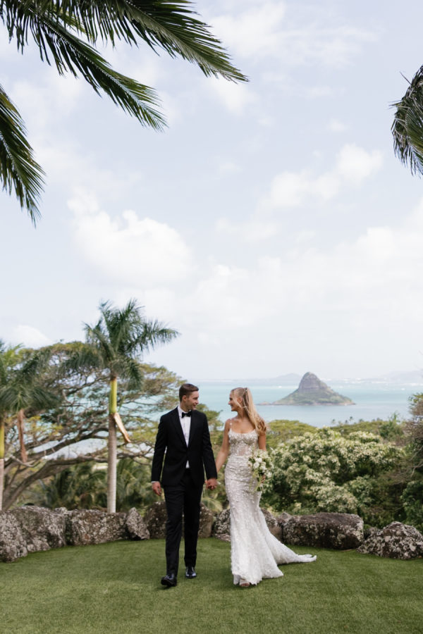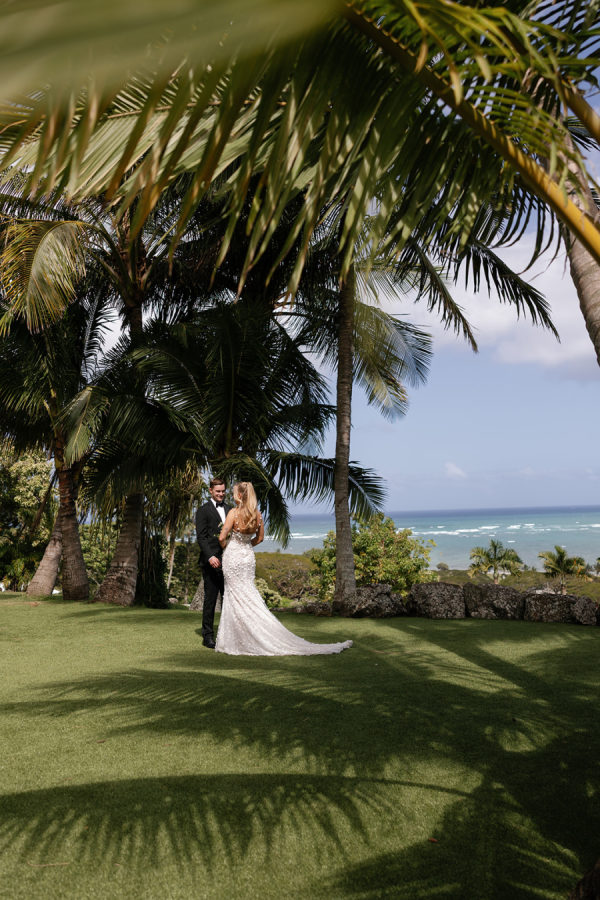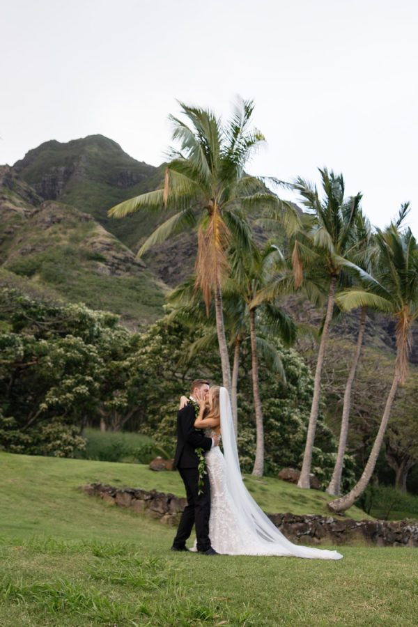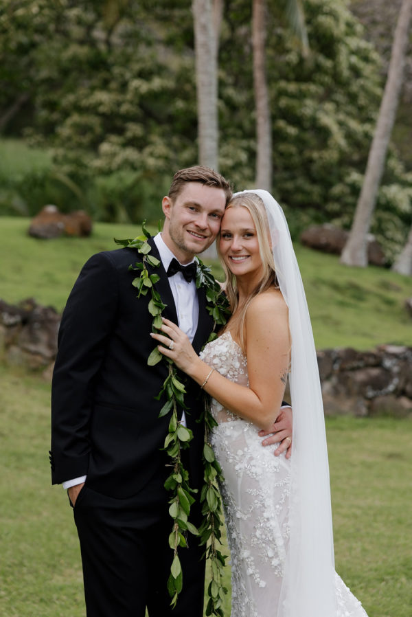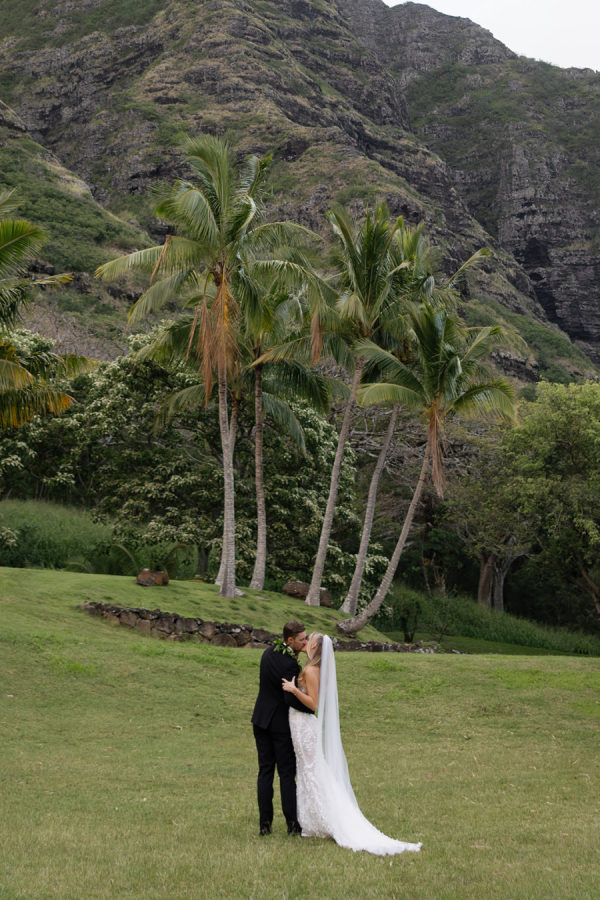Photography: Sheyanne Lyn Photography | Cinematography: No Ka Oi Films | Event Planning: ABC Aloha Bridal Connections | Floral Design: La Flor Events | Wedding Dress: Galia Lahav | Cake: A Cake Life | Ceremony Venue: Kualoa Ranch | Reception Venue: Kualoa Ranch | Catering: Memoirs | DJ: DJ Troy Michael | Groom’s Attire: Vera Wang | Transportation: Rio Limo Hawaii | Bar: Stir Beverage | Beauty: Reveal Hair and Make Up | Content Creator: Easton Content Co. | Musician: Kamaka Camarillo | Rehearsal Dinner Venue: Waikiki Leia | Rentals: Aloha Artisans | Transporation: Oahu Party Bus