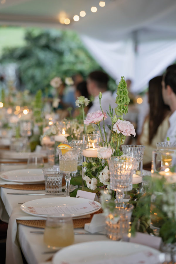 The necklace that Emma wore at her welcome party was handmade from pearls her father found just for her. It was the most meaningful gift that started the celebration with such a pure and grounding intention.