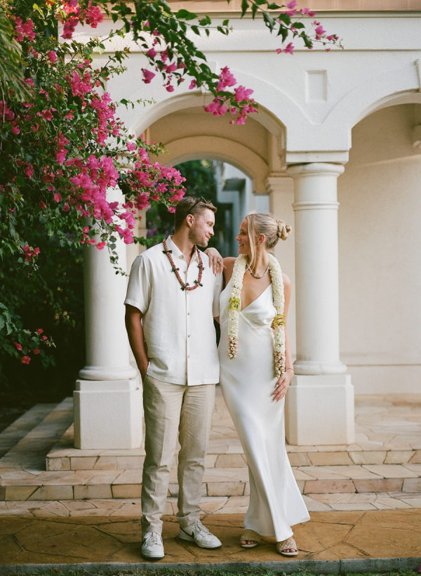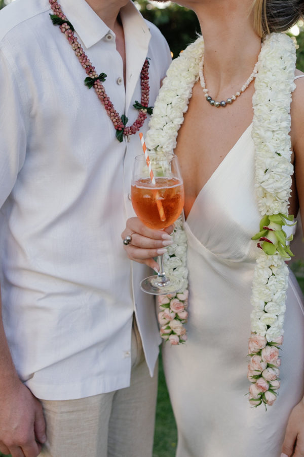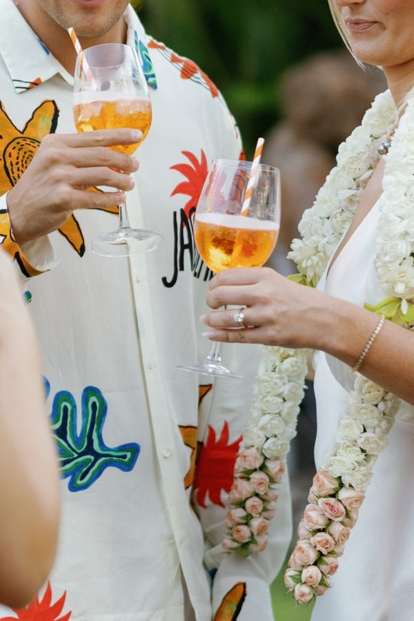 Emma and Nick wanted to create an elevated experience. Following their ceremony, guests were welcomed with beautifully crafted signature drinks and local-fusion hand-passed appetizers. For dinner, they experienced an upscale buffet featuring mahi-mahi, beef tenderloin, and herb-roasted chicken. For late-night snacks, guests enjoyed spam musubis, French fries, and a charcuterie board.